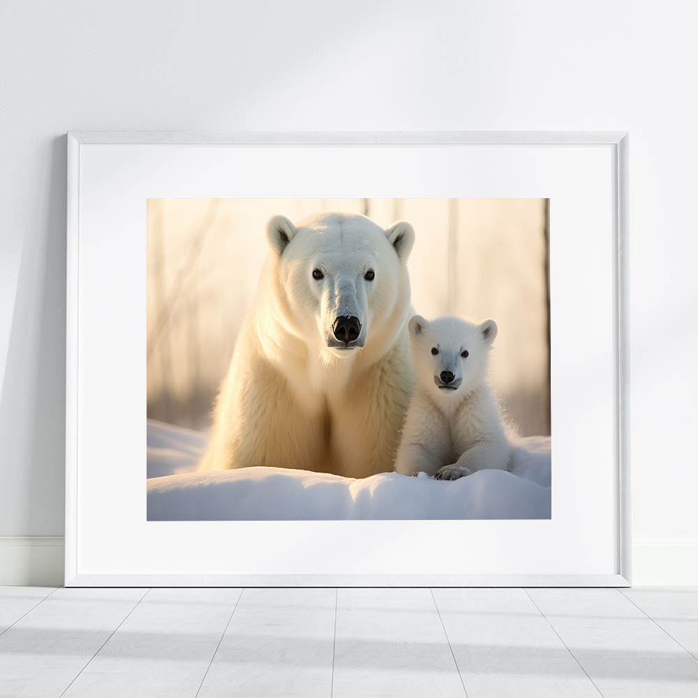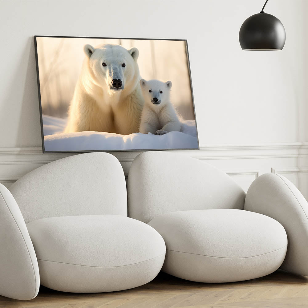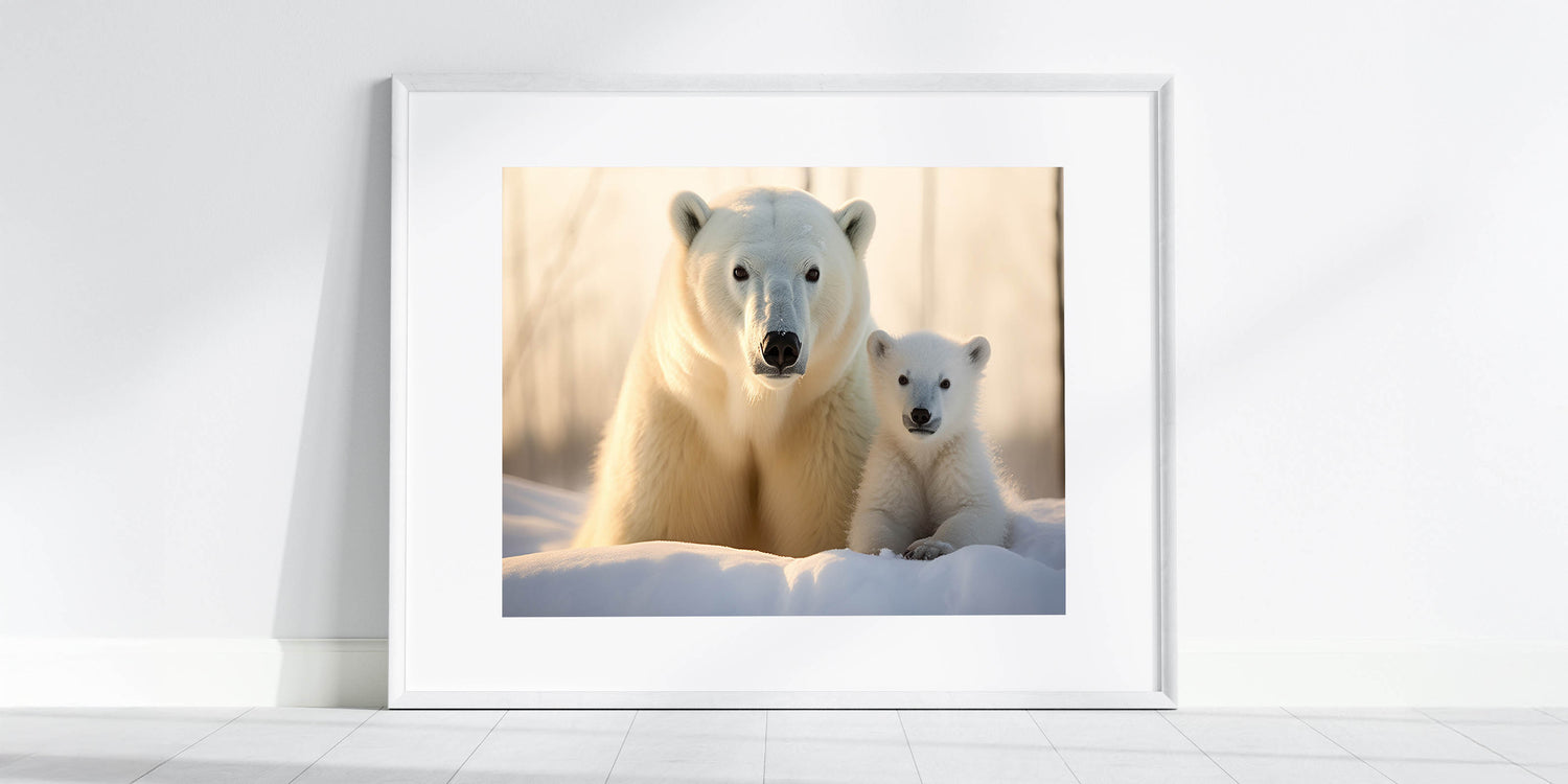 Celebrate the beauty of the Arctic with this heartwarming Polar Bear Wall Decor featuring a mother and cub. This artwork captures the tender bond between a polar bear and her cub, making it a perfect addition to any home for wildlife lovers and nature enthusiasts.