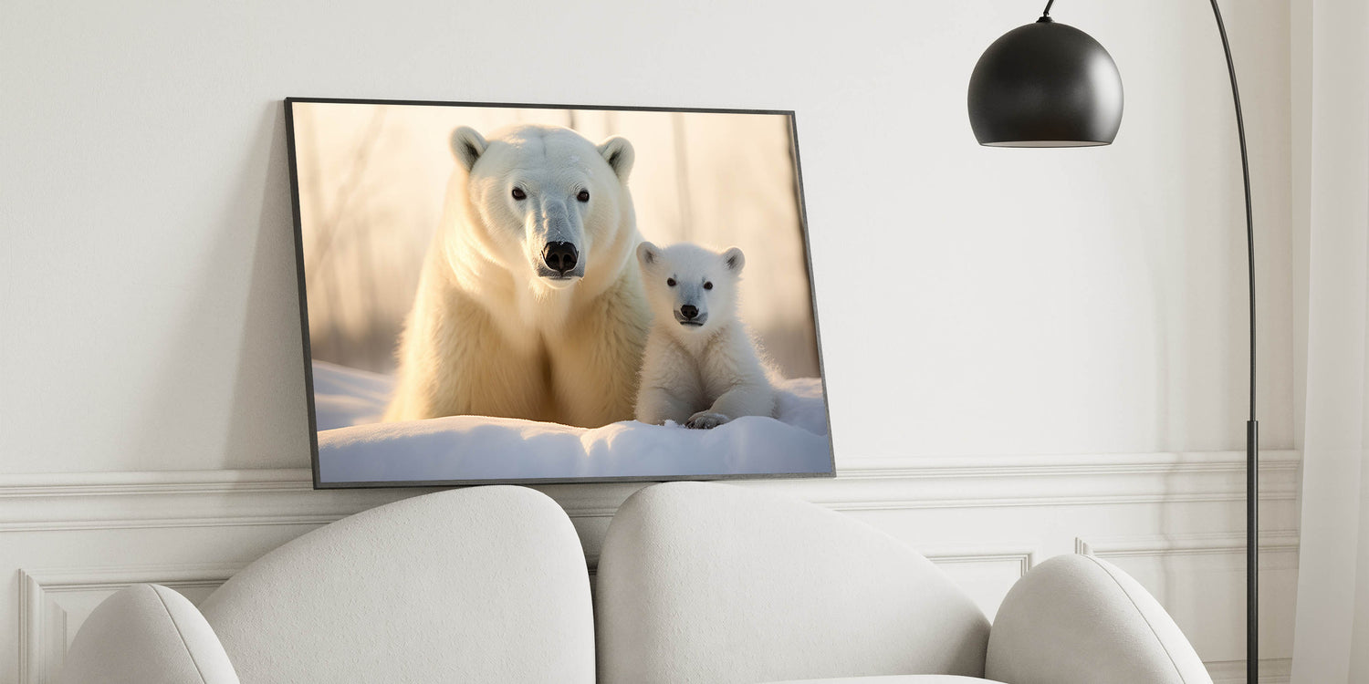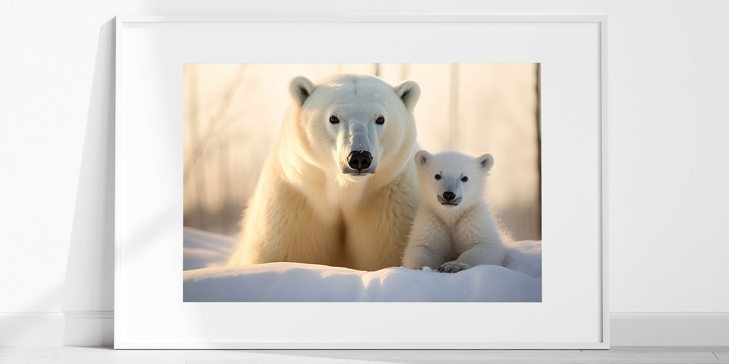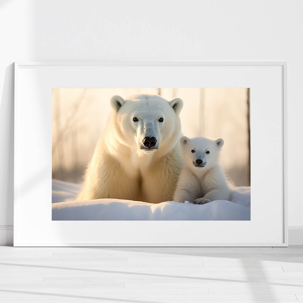 Celebrate the beauty of the Arctic with this heartwarming Polar Bear Wall Decor featuring a mother and cub. This artwork captures the tender bond between a polar bear and her cub, making it a perfect addition to any home for wildlife lovers and nature enthusiasts.