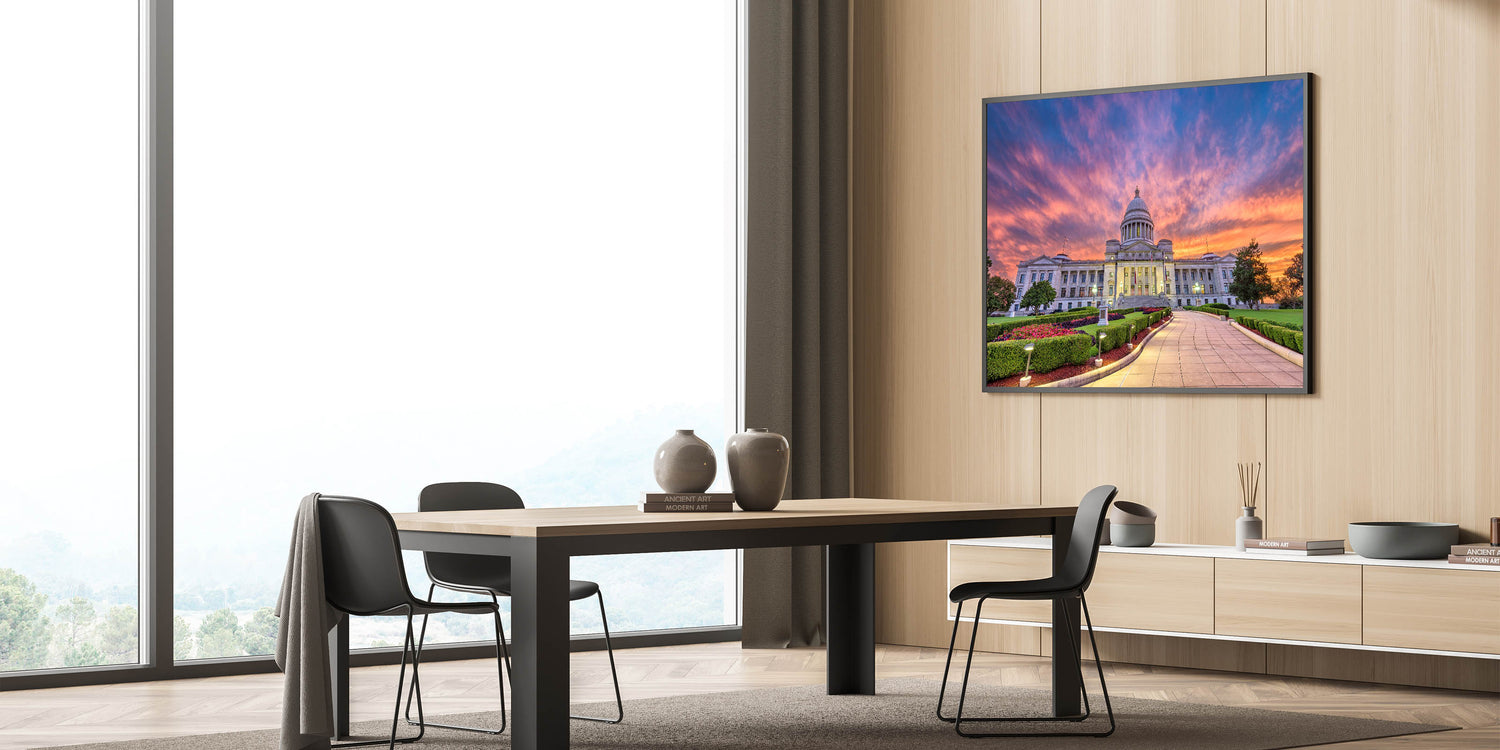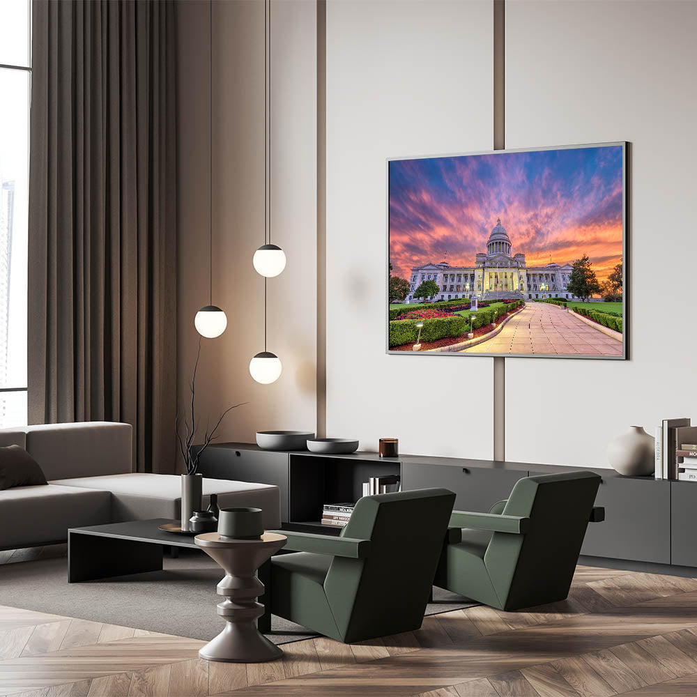 Whether you are decorating your living room, office, or looking for a unique gift, this stunning print of the Arkansas State Capitol at sunset will bring a sense of history and beauty into your space. A true representation of the Natural State’s charm and elegance.