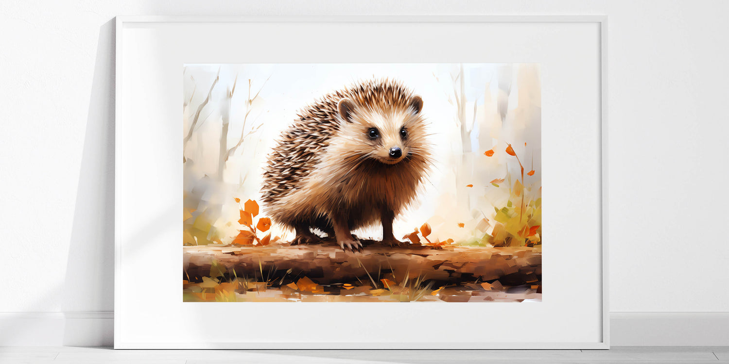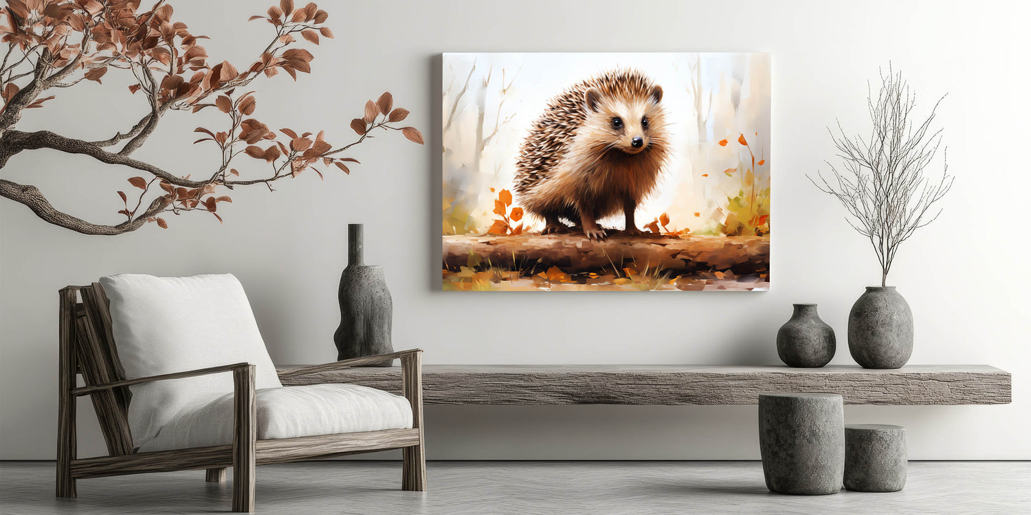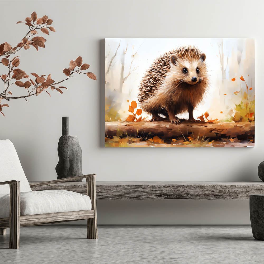 Bring the warmth and charm of the forest into your home with this adorable hedgehog artwork. It's more than just decor; it's a piece of nature's beauty captured on your walls, making it a perfect gift for animal lovers or a delightful addition to your own collection.