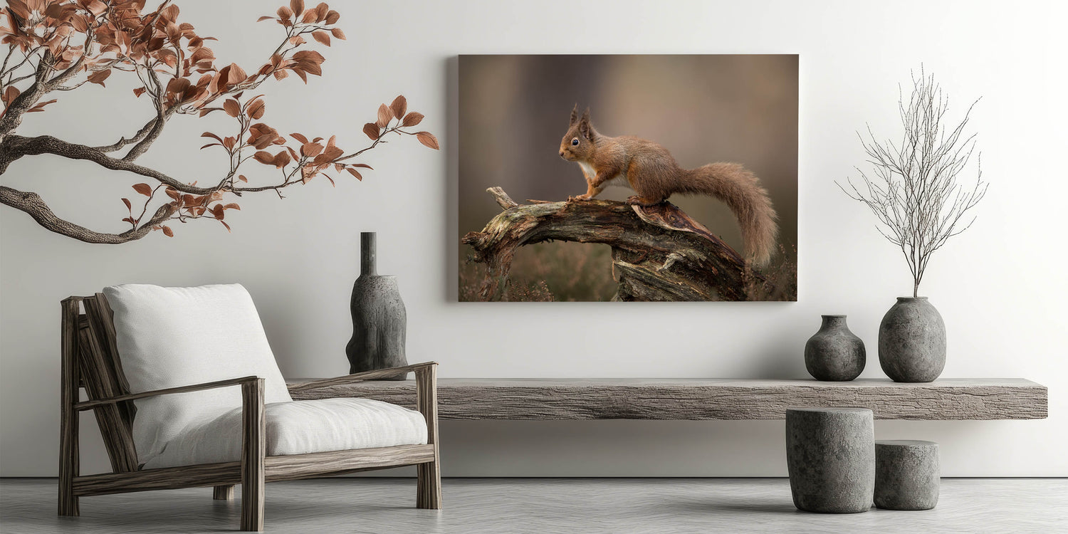 - High-Quality Material: Available as a Squirrel Canvas Print, Framed Art, Acrylic Glass Art, and more.