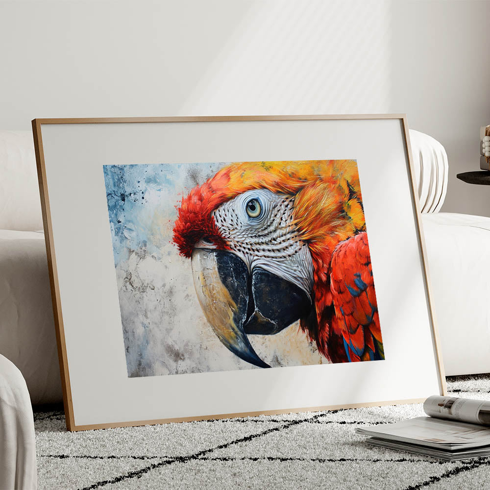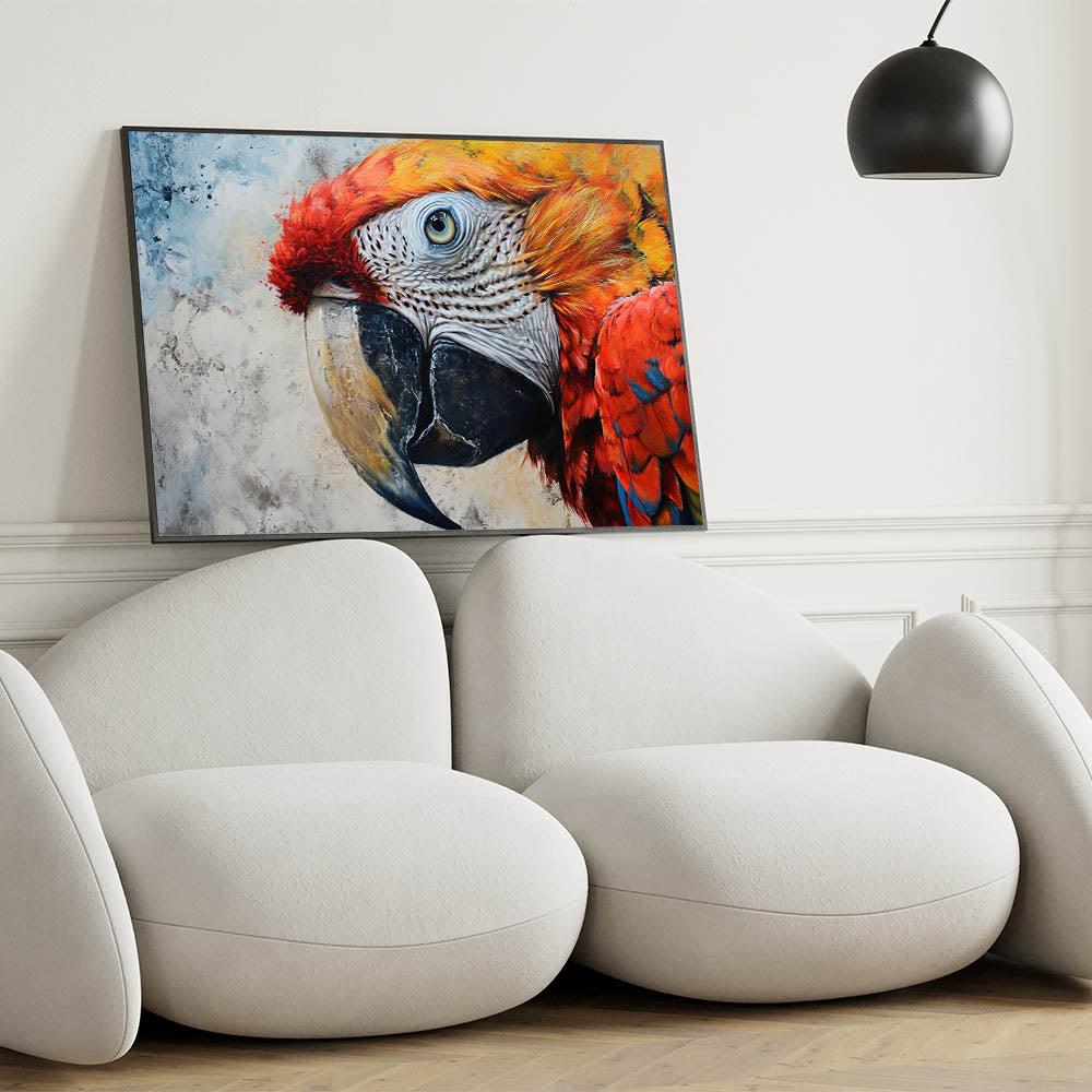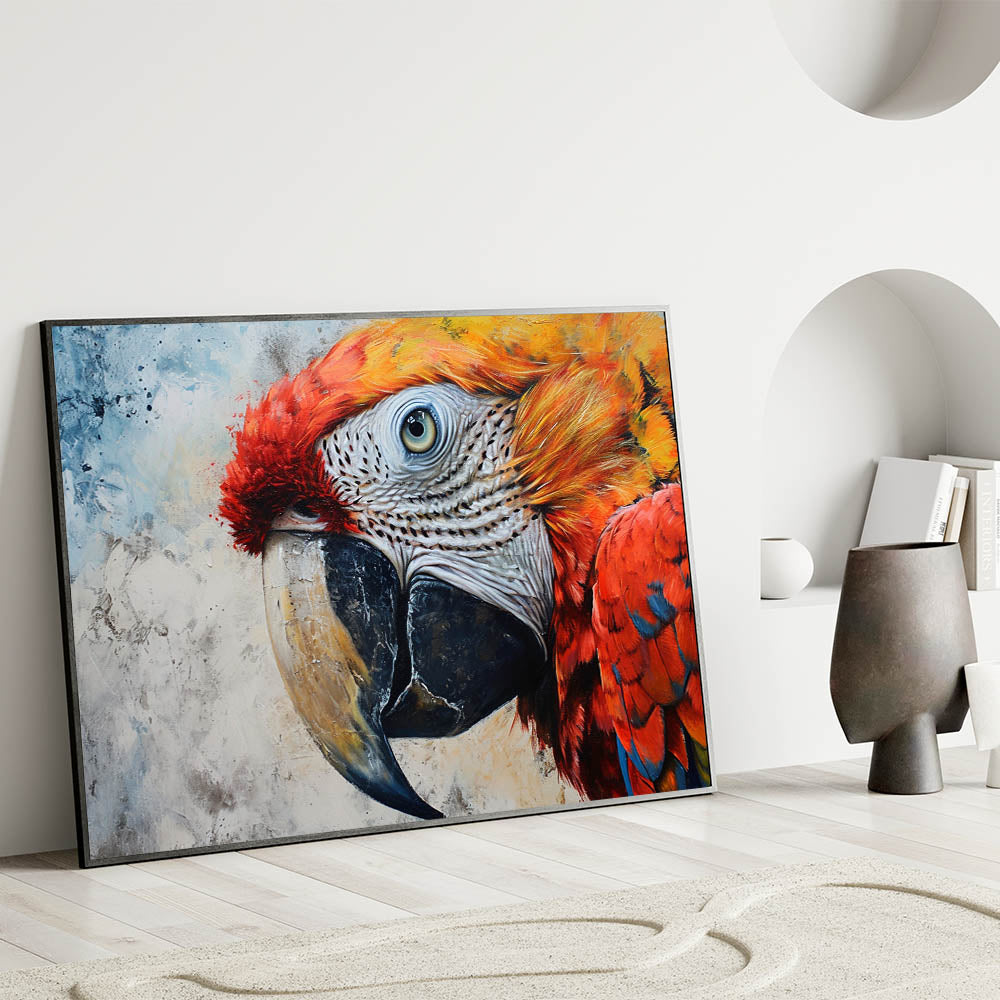 This Parrot Canvas Print is not just a piece of decor; it's an artwork that brings you up close and personal with the beauty of nature. Whether displayed in a living room, office, or bedroom, this artwork adds a touch of exotic elegance to your space. Elevate your home with this captivating close-up macaw portrait today!