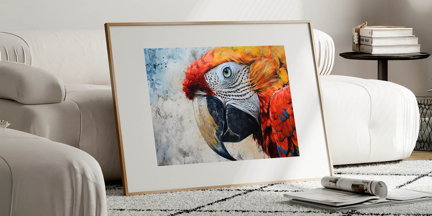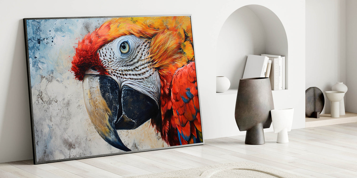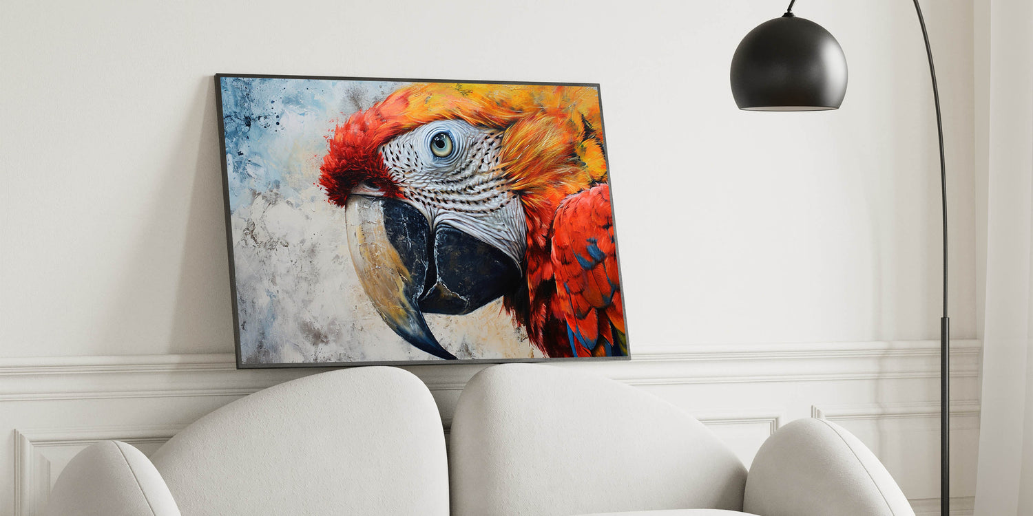 This Parrot Canvas Print is not just a piece of decor; it's an artwork that brings you up close and personal with the beauty of nature. Whether displayed in a living room, office, or bedroom, this artwork adds a touch of exotic elegance to your space. Elevate your home with this captivating close-up macaw portrait today!