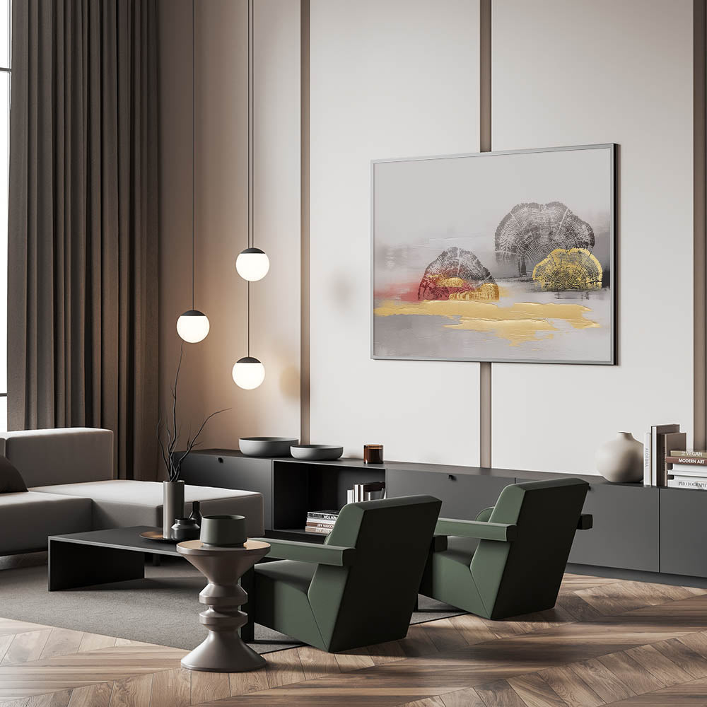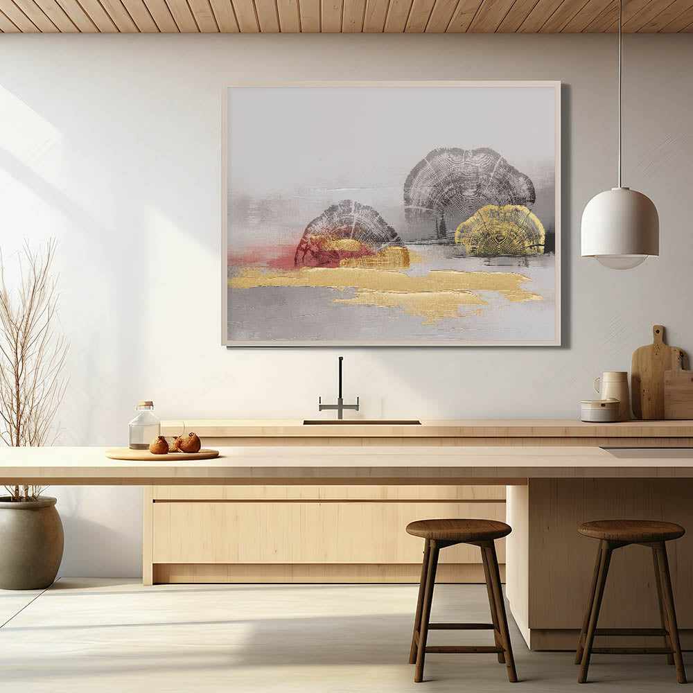 Introduce a touch of natural elegance to your space with this Contemporary Abstract Strokes Art piece, featuring a blend of earthy tones and luxurious gold accents. The design showcases fluid lines in shades of brown, gray, and white, creating a harmonious and sophisticated look. Perfect for modern and minimalist interiors, this artwork is available in various formats, including stretched canvas, framed canvas, acrylic glass, and rolled print, ensuring a perfect fit for any decor style.