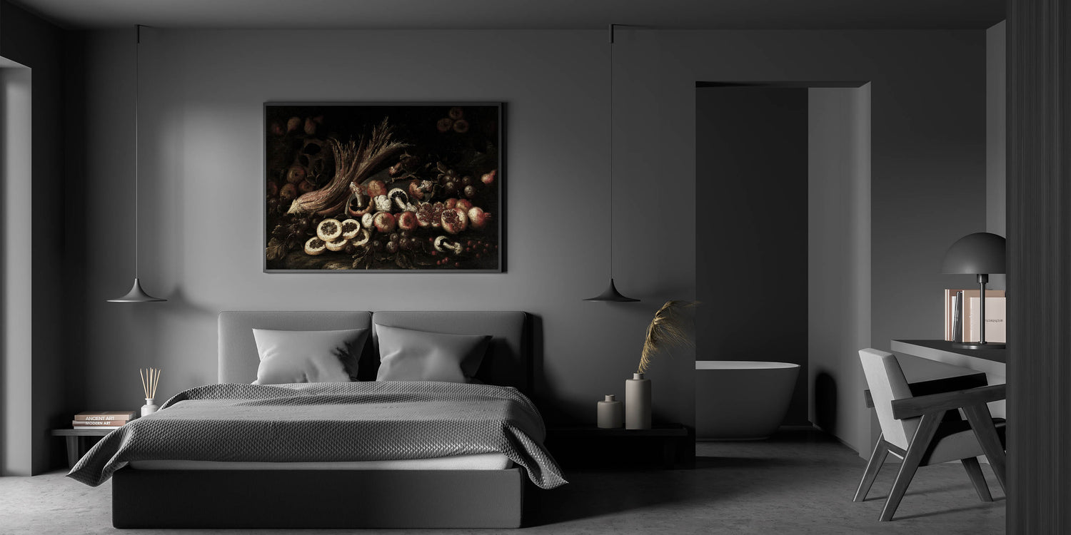 Dark Art Decor - Moody Still Life with Fruits and Rustic Elegance