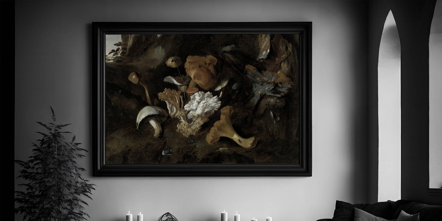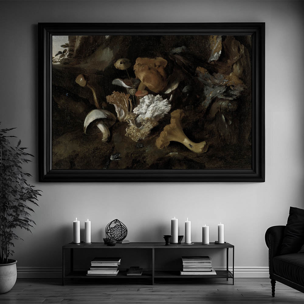 Dark Moody Mushroom Still Life - Atmospheric Botanical Wall Art Decor