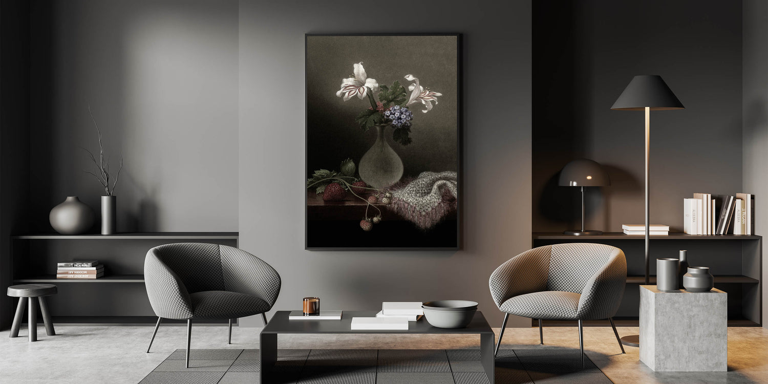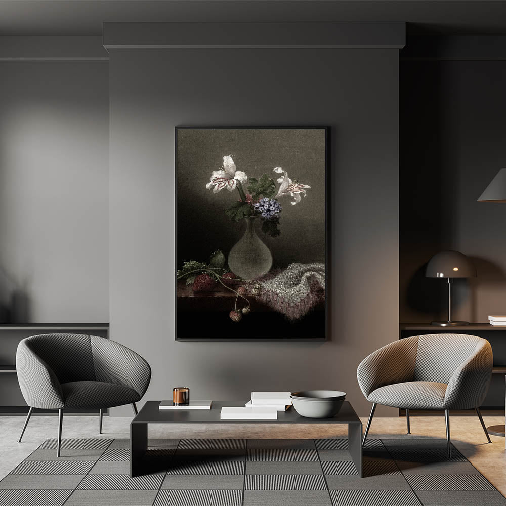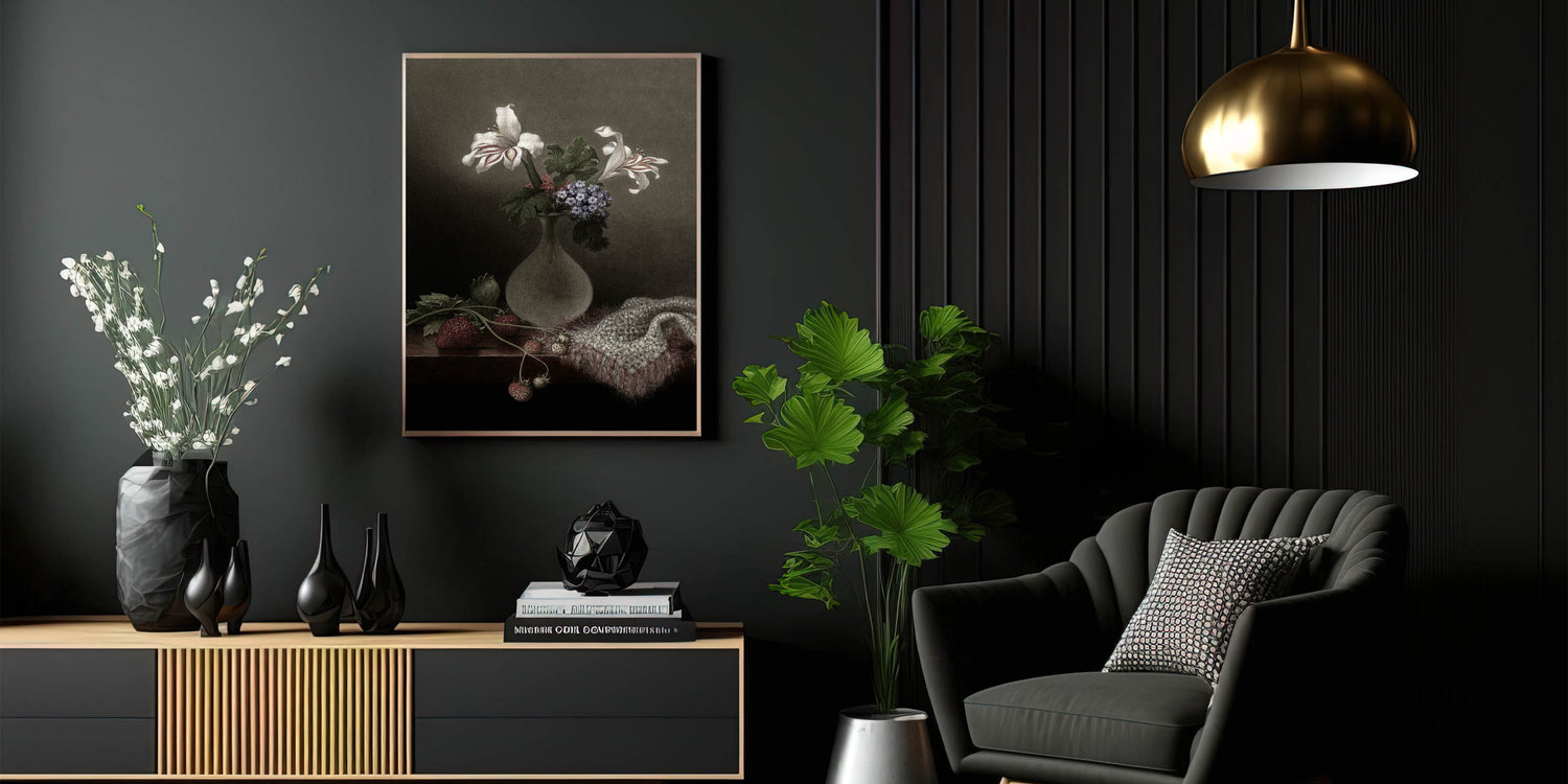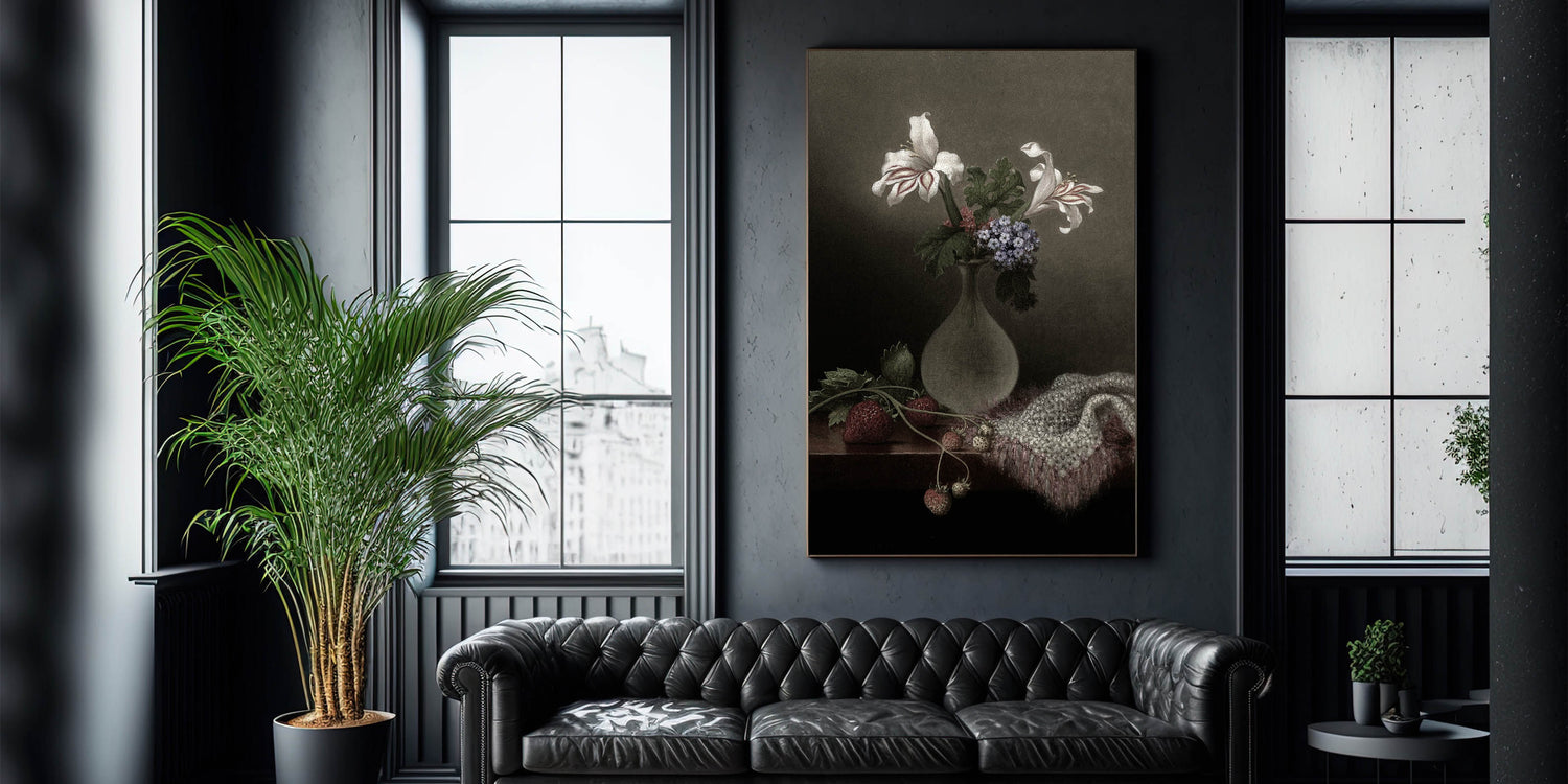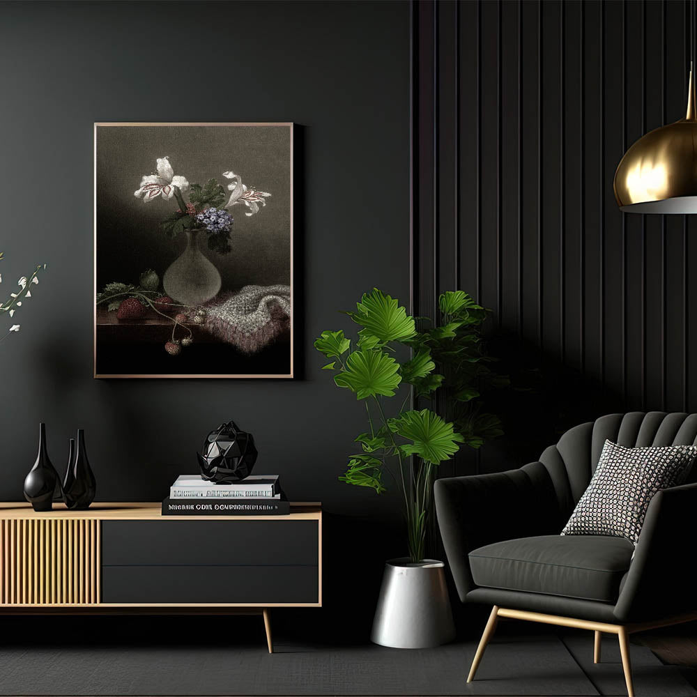 Dark Moody Wall Art: Dramatic Floral Still Life for Timeless Interiors