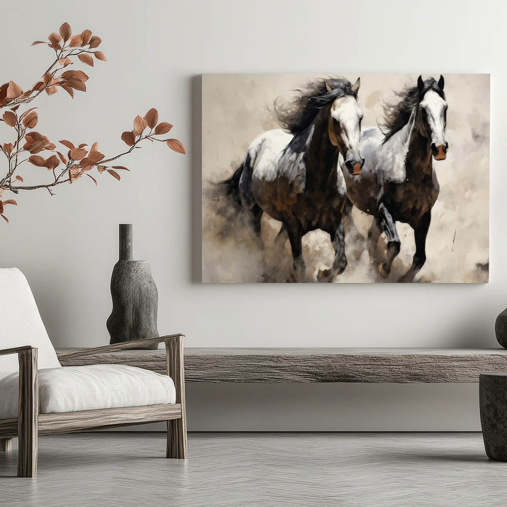 Dynamic Running Horses Wall Art - Majestic Equestrian Canvas Print