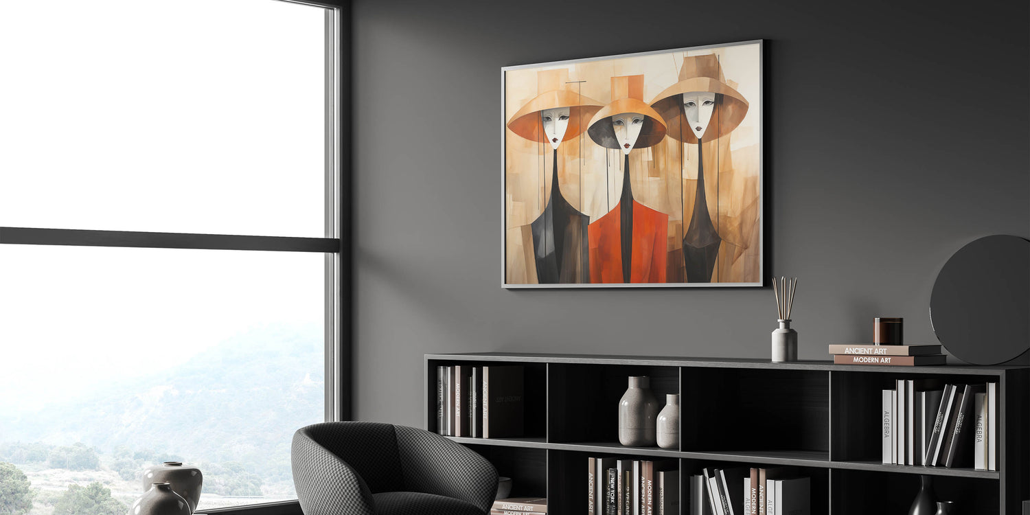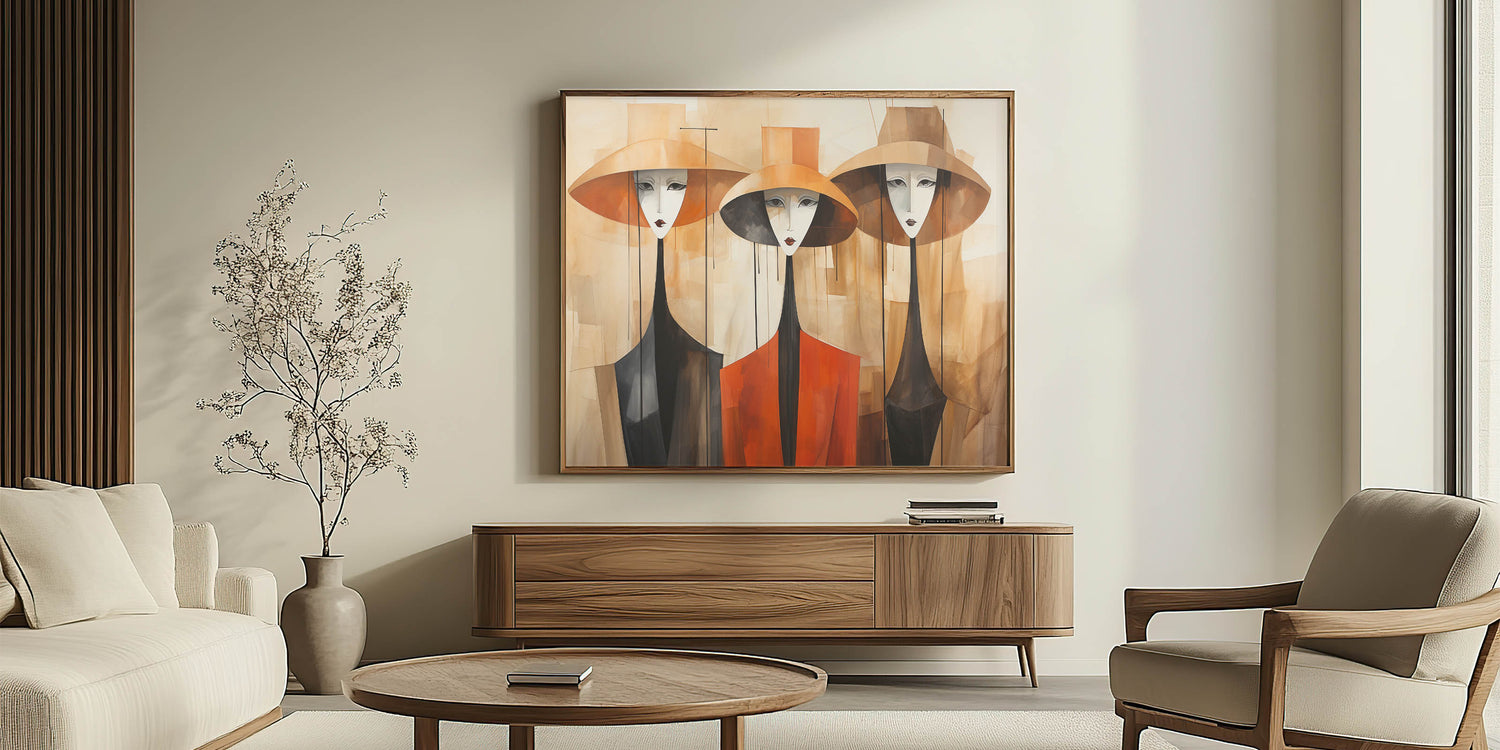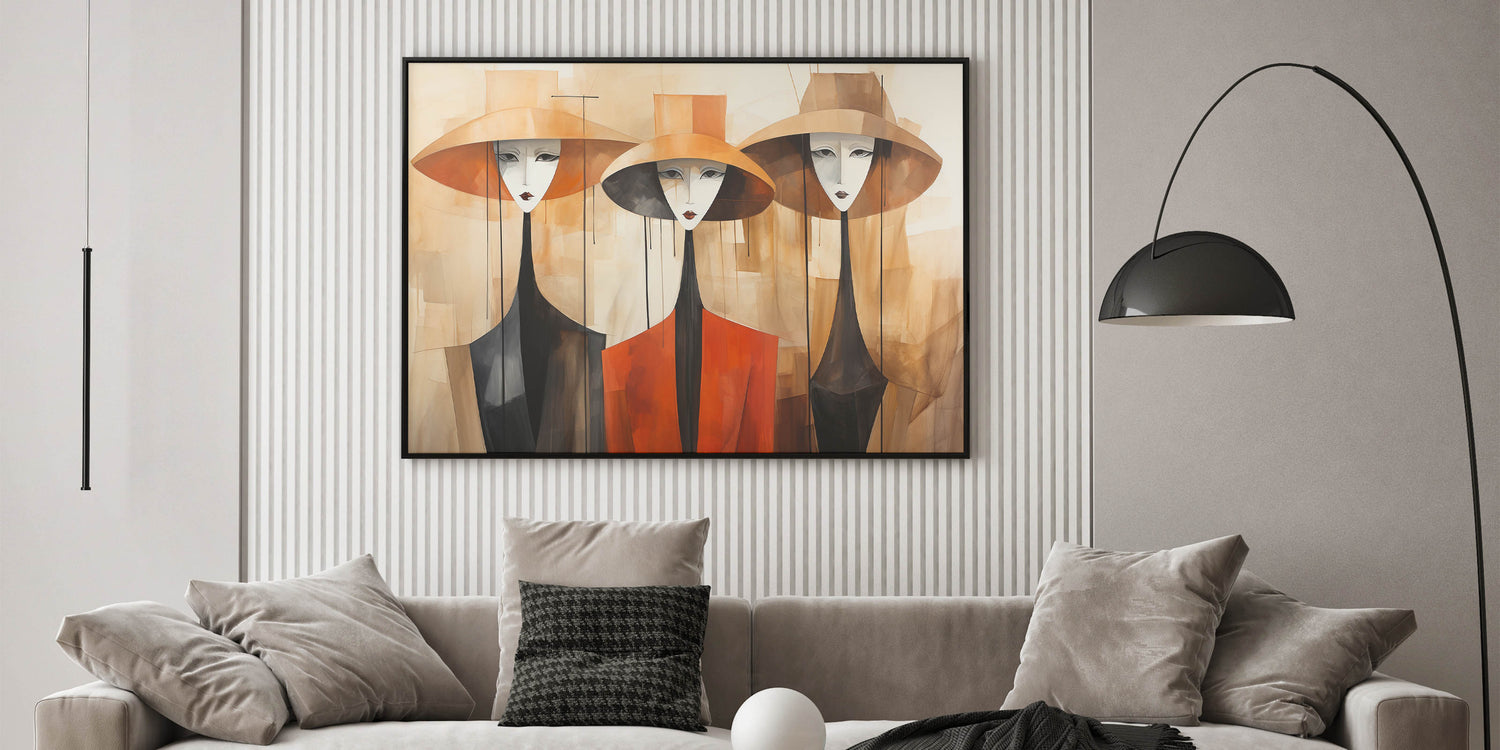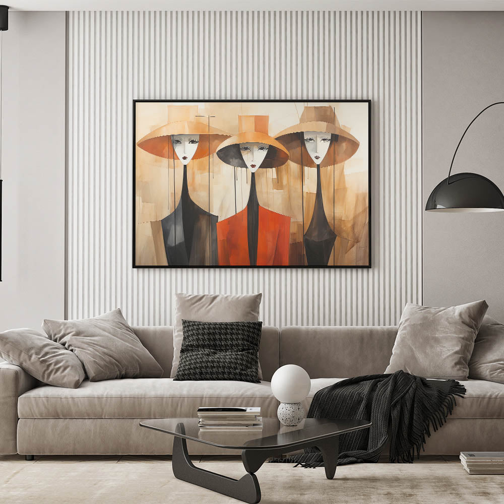 Elegant Abstract Figures in Hats | Modern Figurative Wall Art Canvas