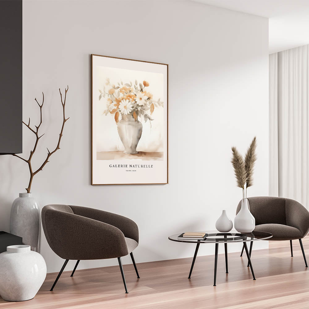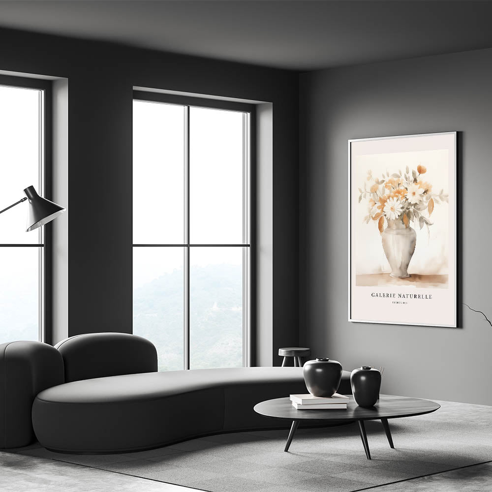 Introducing our Elegant Floral Vase, a minimalist art piece that beautifully captures the simplicity and elegance of nature. This sophisticated artwork features a delicate arrangement of flowers in a vase, making it a perfect addition to any modern or contemporary space.