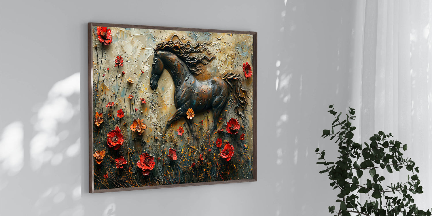 This horse artwork for walls is more than just a decoration—it's a celebration of the harmony between nature and equine grace. Whether you're an equestrian lover or simply appreciate fine art, this design will bring warmth and sophistication to your space.