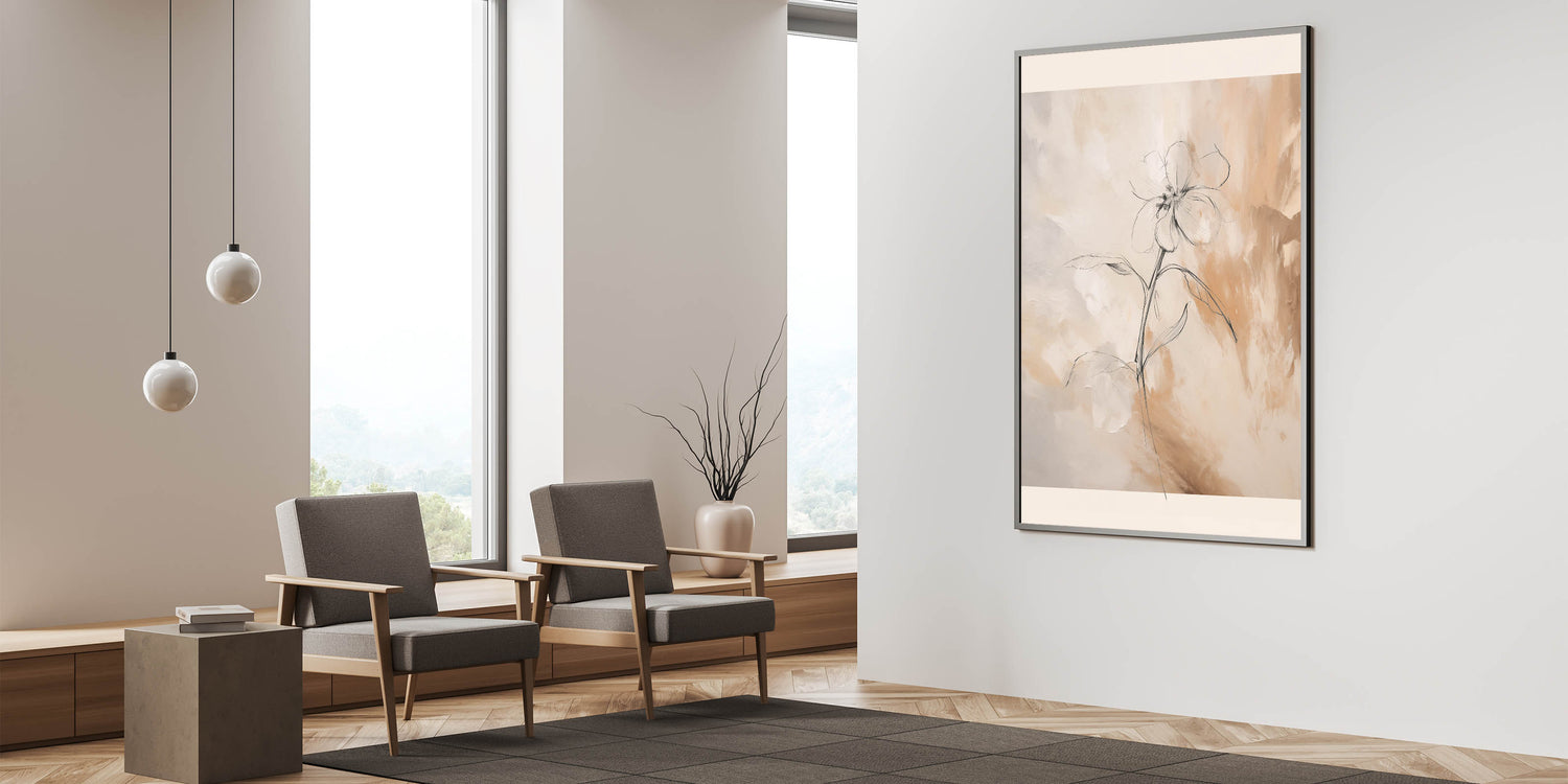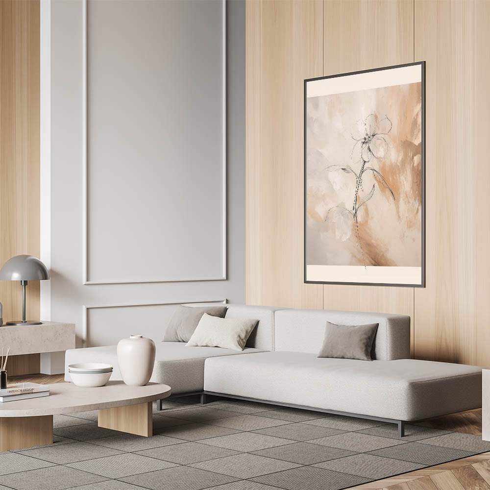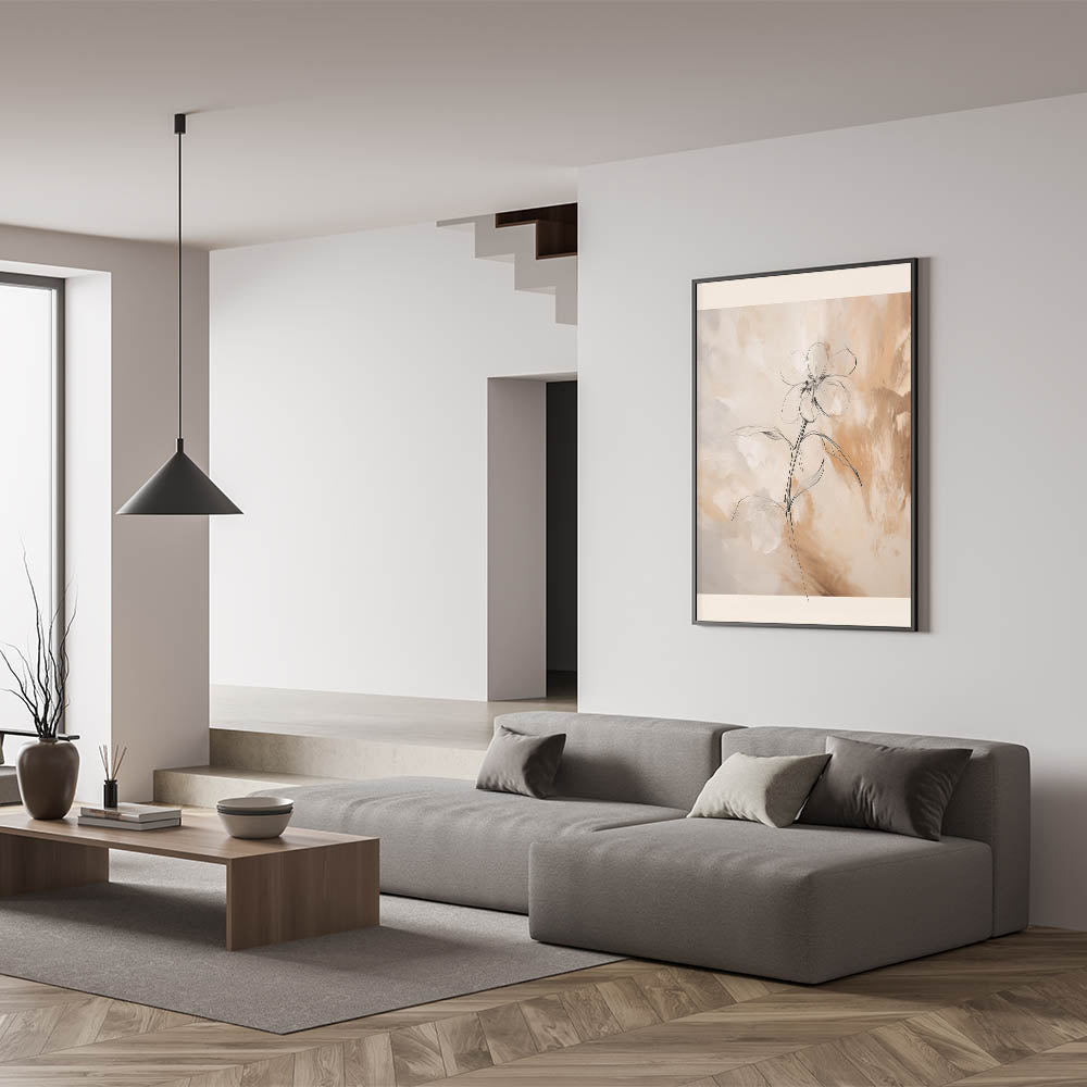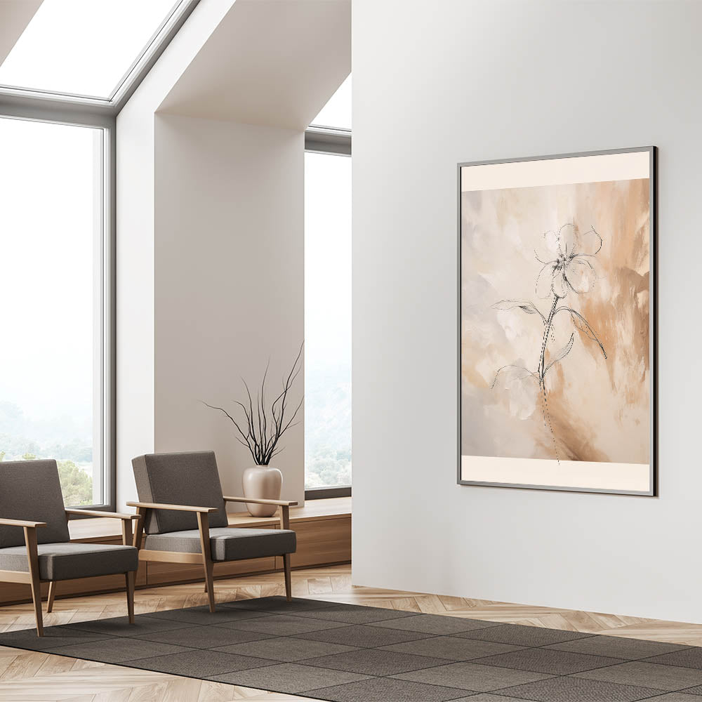 Introduce your space to a touch of elegance with this stunning minimalist abstract flower art. This contemporary piece combines clean, simple lines with a soft, muted color palette, creating a serene and sophisticated atmosphere. Ideal for modern homes, this artwork is available in multiple formats to suit any decor style.