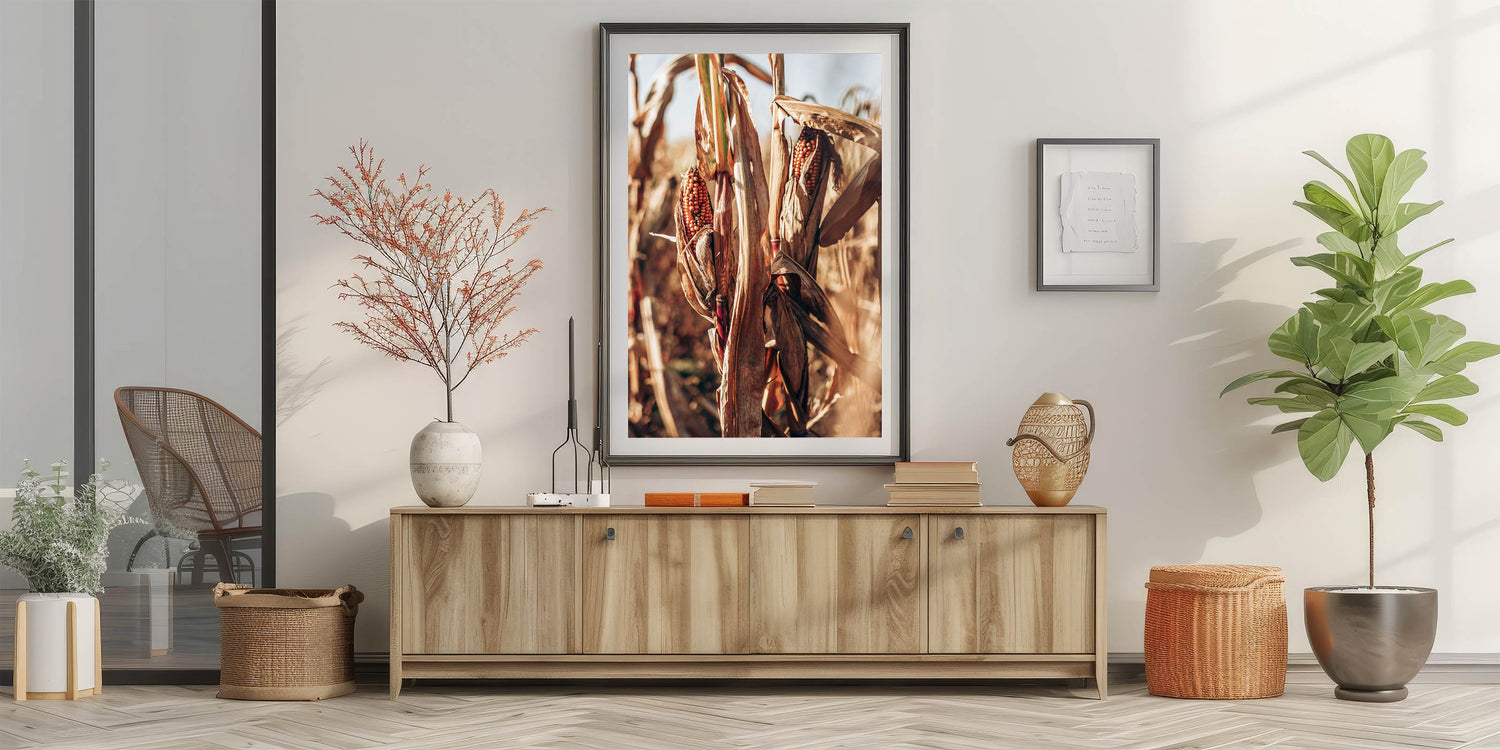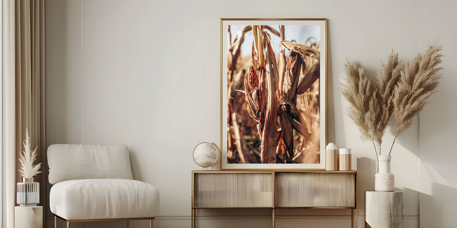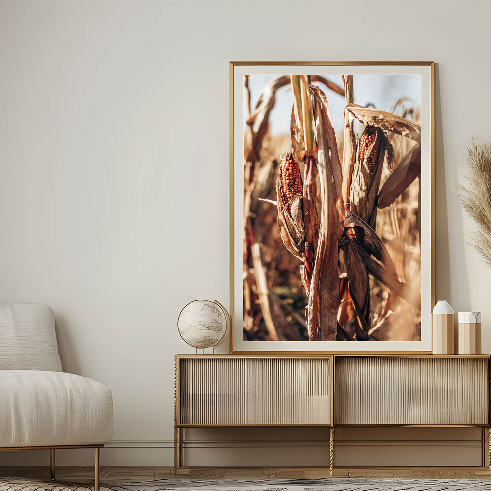 Farmhouse Wall Art Dried Cornfield Print | Rustic Country Harvest Decor