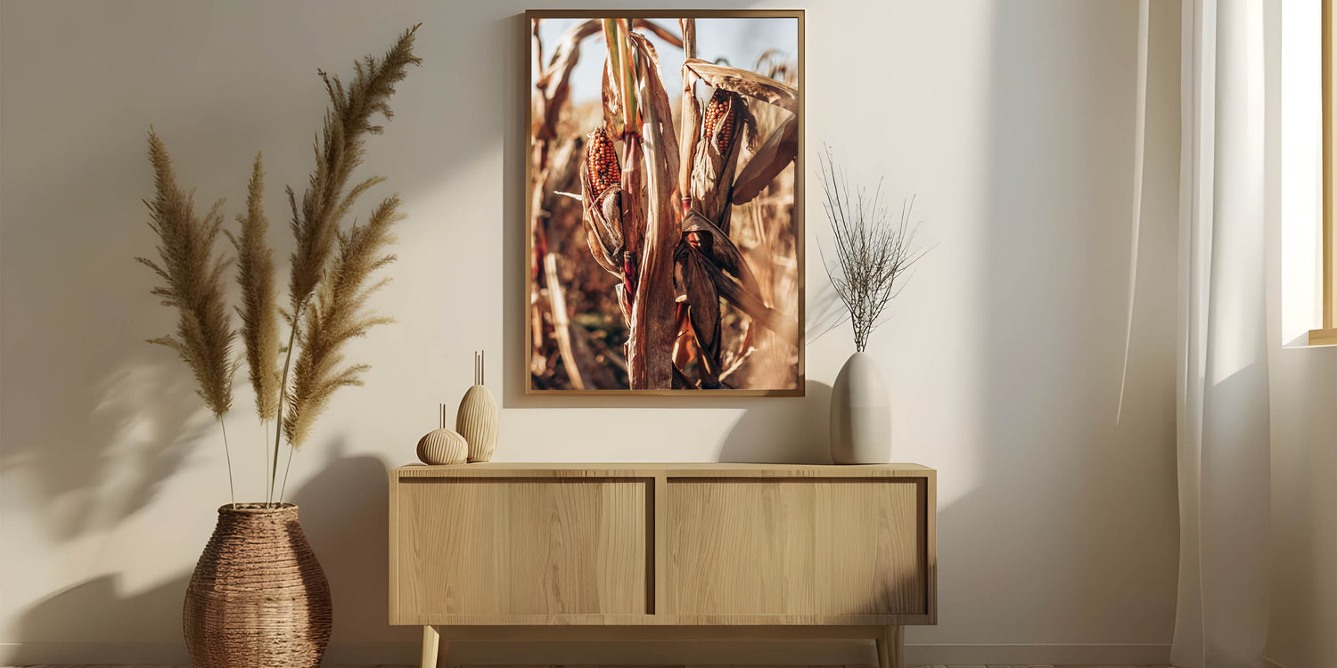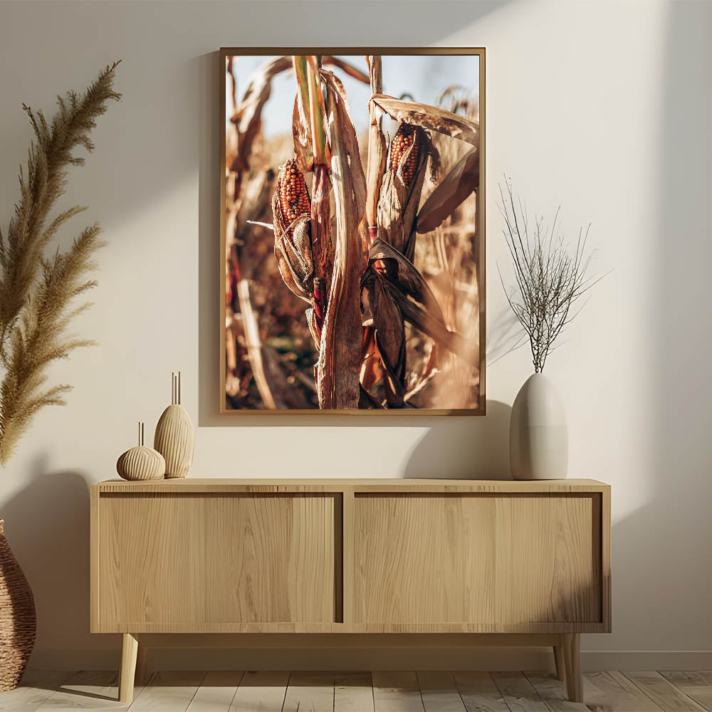Capture the essence of the harvest season with this striking dried cornfield wall art, a perfect addition to your rustic farmhouse decor. The detailed textures of the dried corn husks and warm, earthy tones make this piece a stunning representation of the countryside’s natural beauty. Its vintage-inspired design brings a sense of history and warmth, reminiscent of farm life during the harvest.