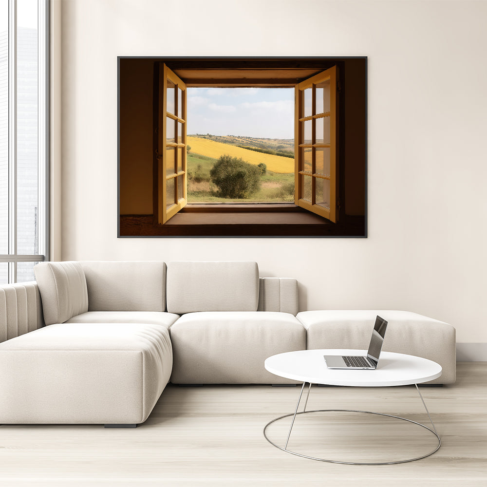 Golden Fields Window Wall Art - Peaceful Landscape Canvas Prints