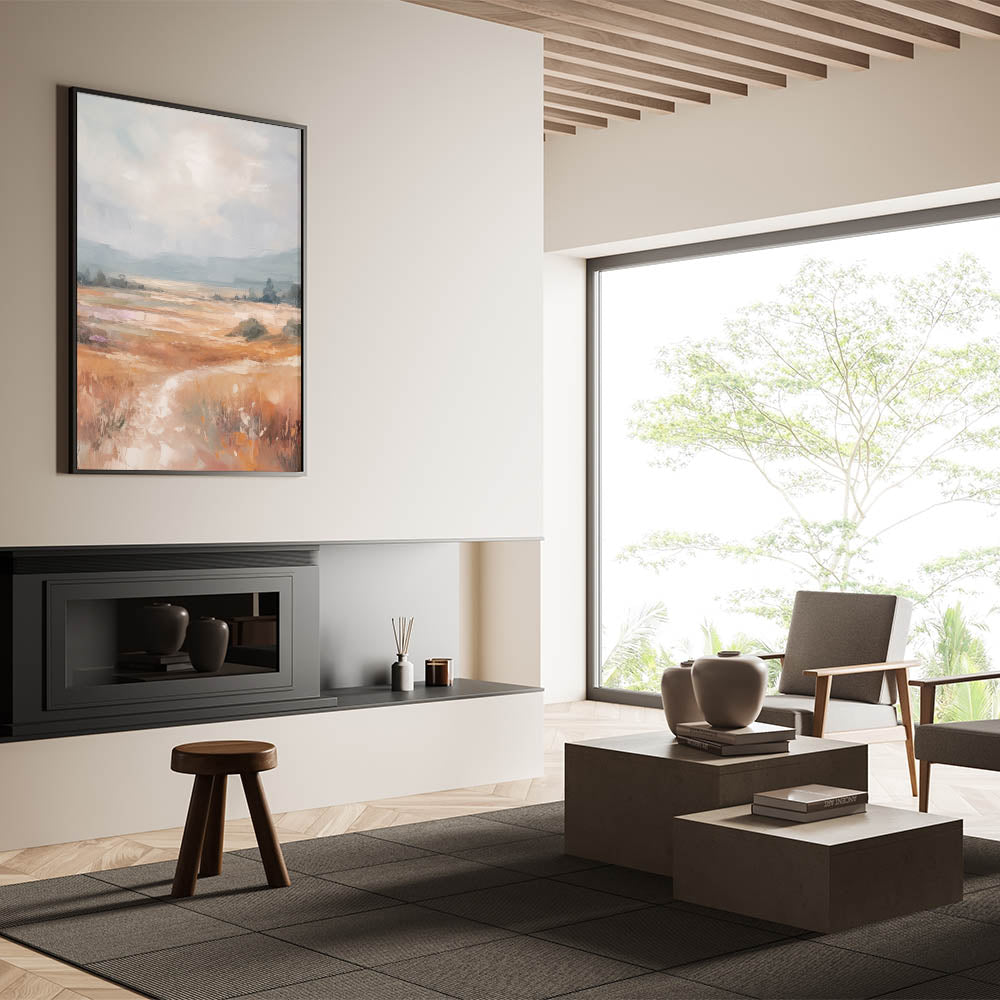 Enhance your living or workspace with this stunning piece, which brings together the beauty of natural landscapes and the elegance of abstract minimalism.