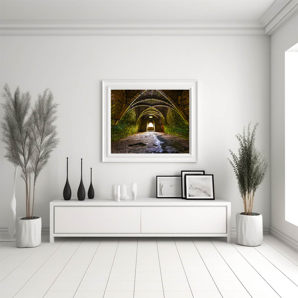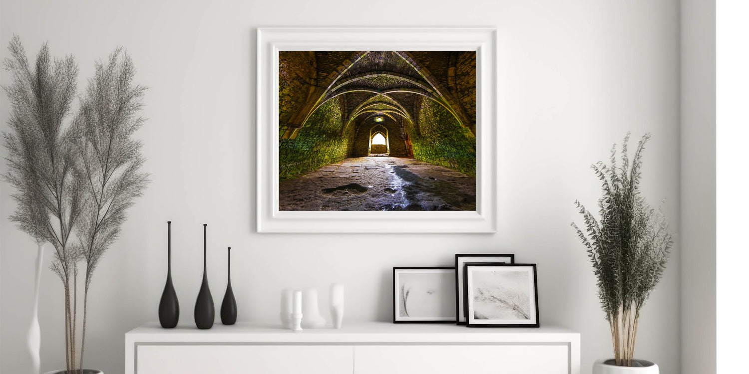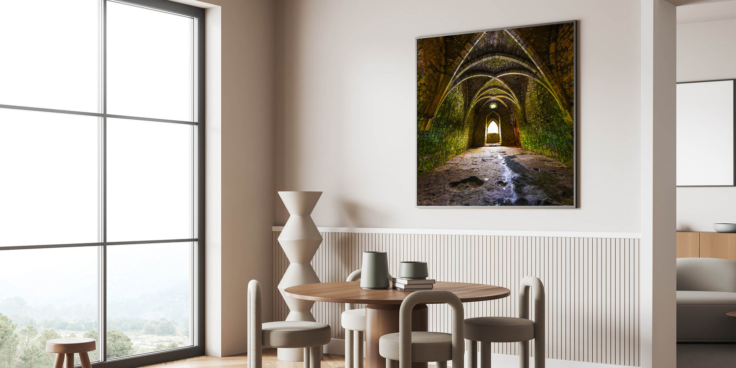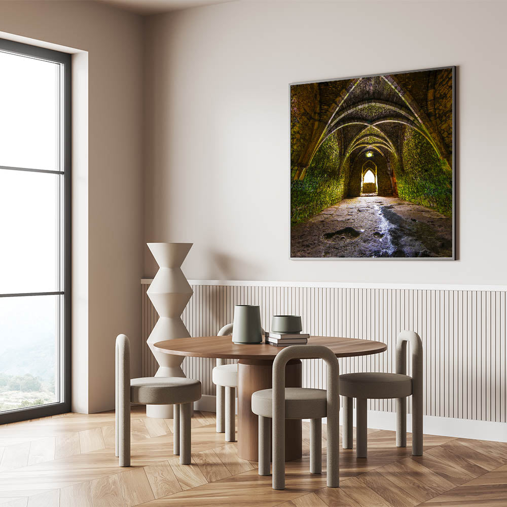 Bring the haunting beauty of medieval architecture into your home with this mesmerizing piece. Whether displayed in a living room, bedroom, or study, this artwork will add a sense of history and gothic allure to your decor. Let the ancient stone archway inspire and captivate your imagination.