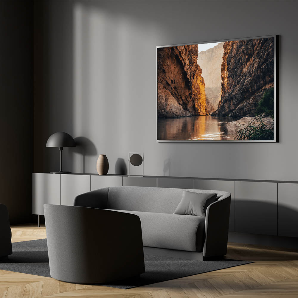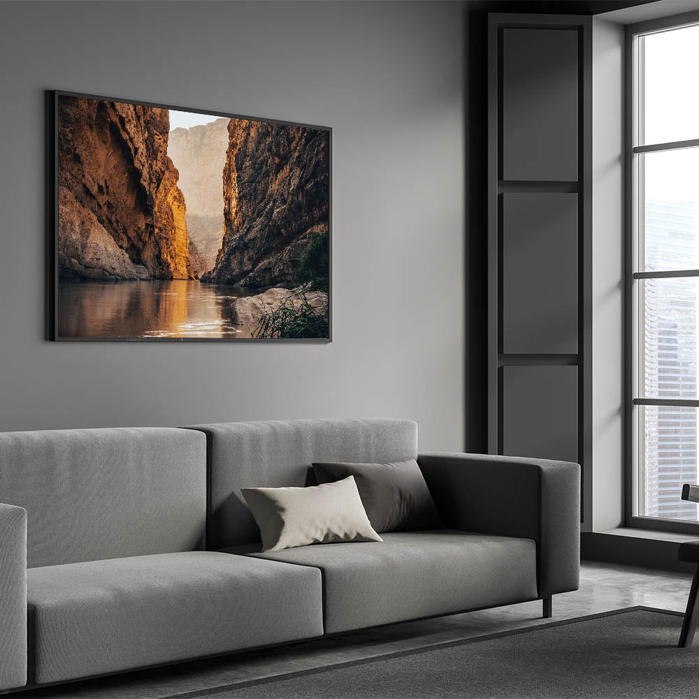 Immerse yourself in the serene beauty of nature with our majestic canyon wall art. This stunning piece captures the calm and awe-inspiring atmosphere of a canyon river, surrounded by towering rock formations that showcase the rugged beauty of the landscape. Ideal for nature lovers and adventurers alike, this artwork brings the peacefulness and grandeur of the great outdoors into your home.
