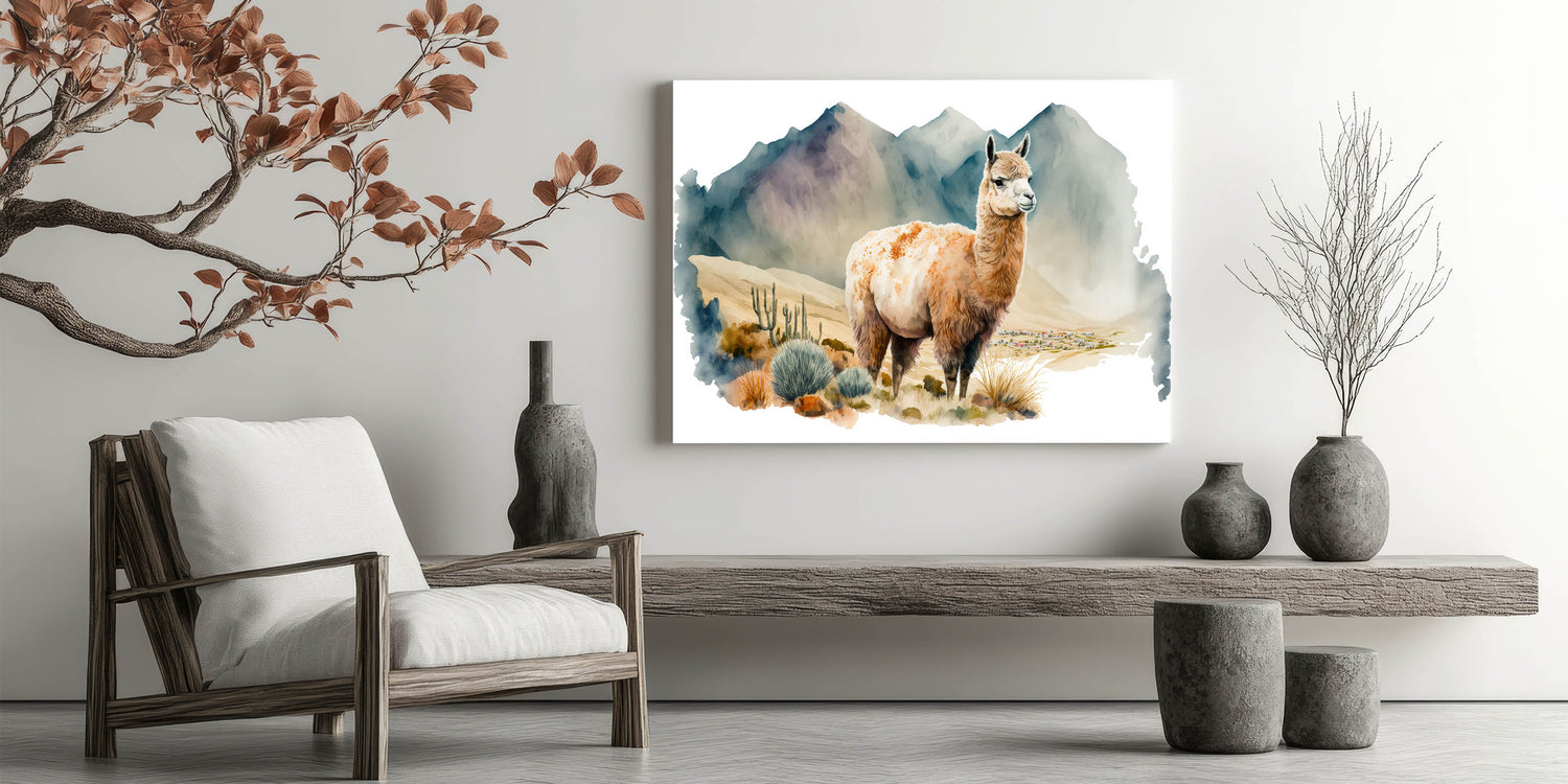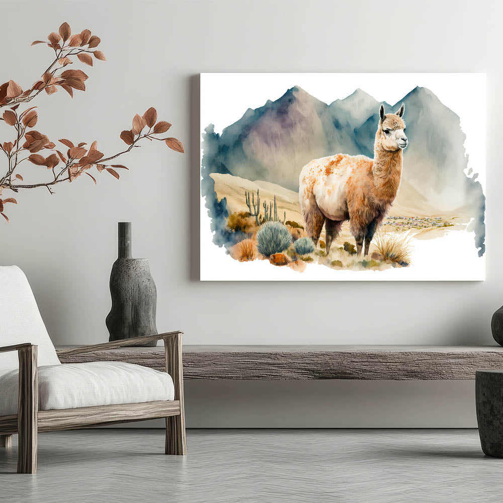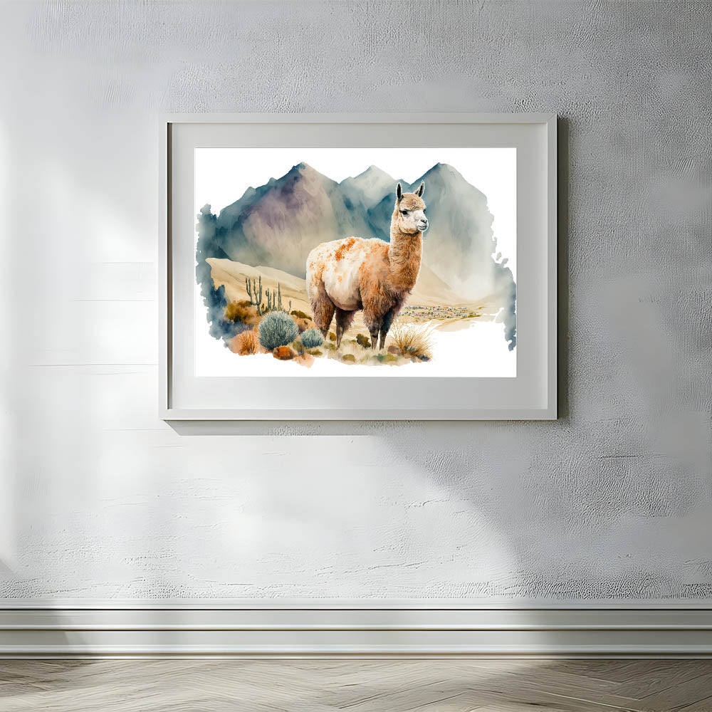 Transform your living space with this Majestic Llama Wall Art, a stunning representation of wildlife art that brings the beauty of the natural world into your home. This piece showcases a proud llama standing amidst a serene landscape, with mountains in the background and desert flora adding a touch of the wild. The artwork’s rich details and vibrant colors make it a perfect addition to any room that needs a rustic, yet elegant touch.