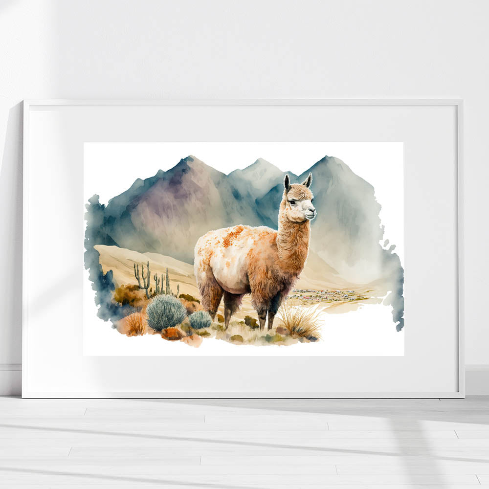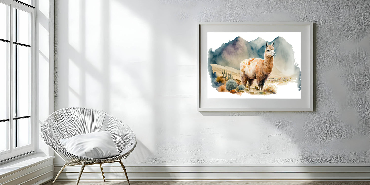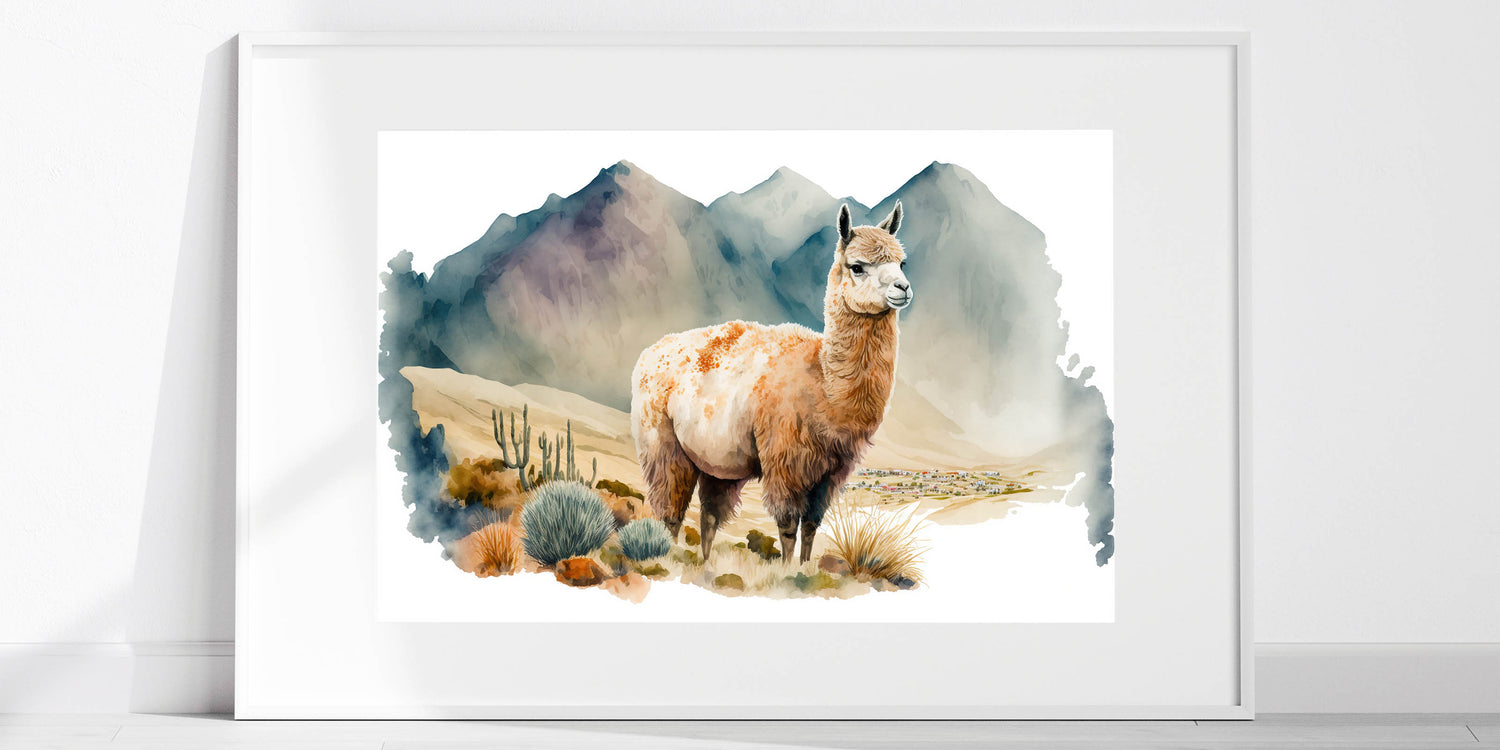 Transform your living space with this Majestic Llama Wall Art, a stunning representation of wildlife art that brings the beauty of the natural world into your home. This piece showcases a proud llama standing amidst a serene landscape, with mountains in the background and desert flora adding a touch of the wild. The artwork’s rich details and vibrant colors make it a perfect addition to any room that needs a rustic, yet elegant touch.