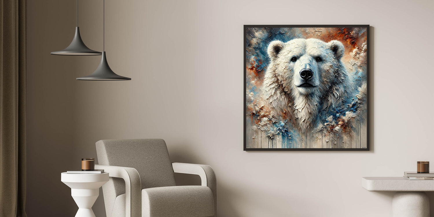 Transform your living space with this exquisite piece of Arctic Wildlife Art. Perfect for wildlife enthusiasts and art lovers, this Polar Bear Canvas Print is a bold statement piece. Order now to bring the captivating beauty of the Arctic into your home.