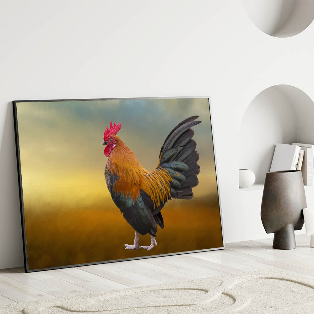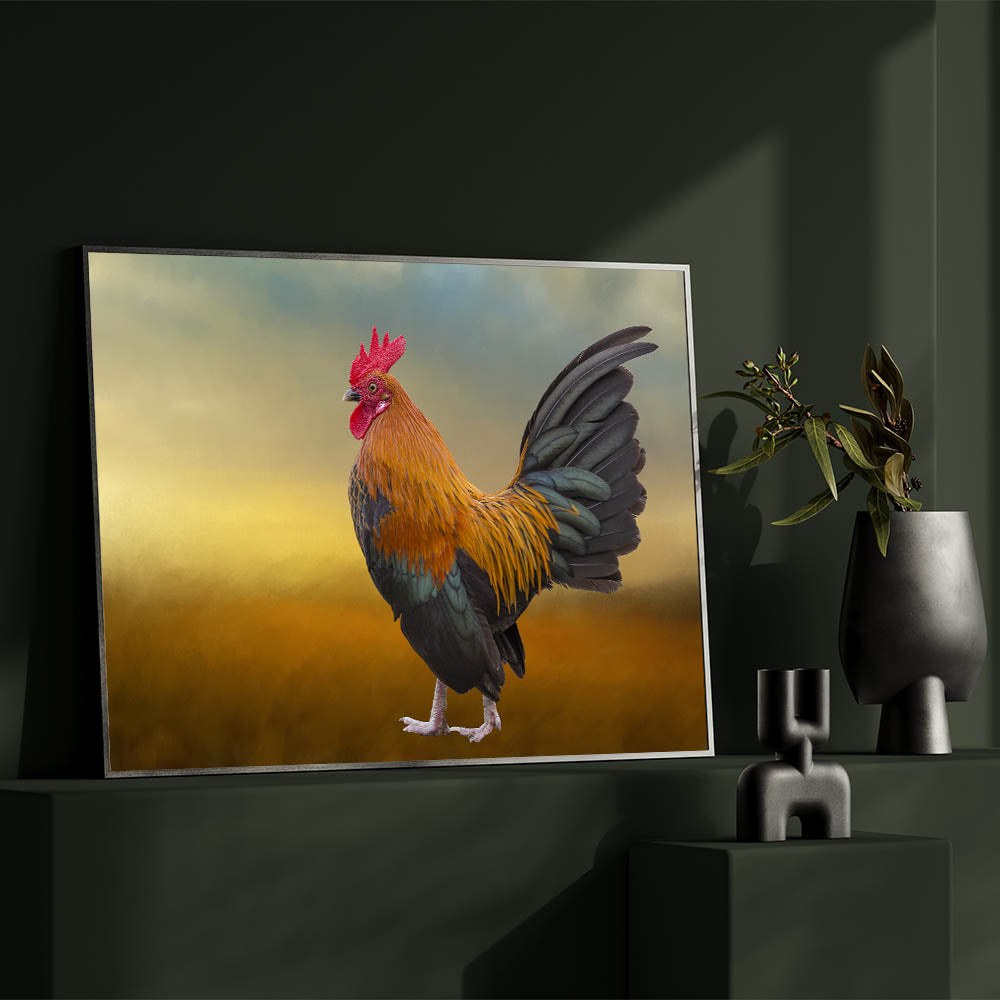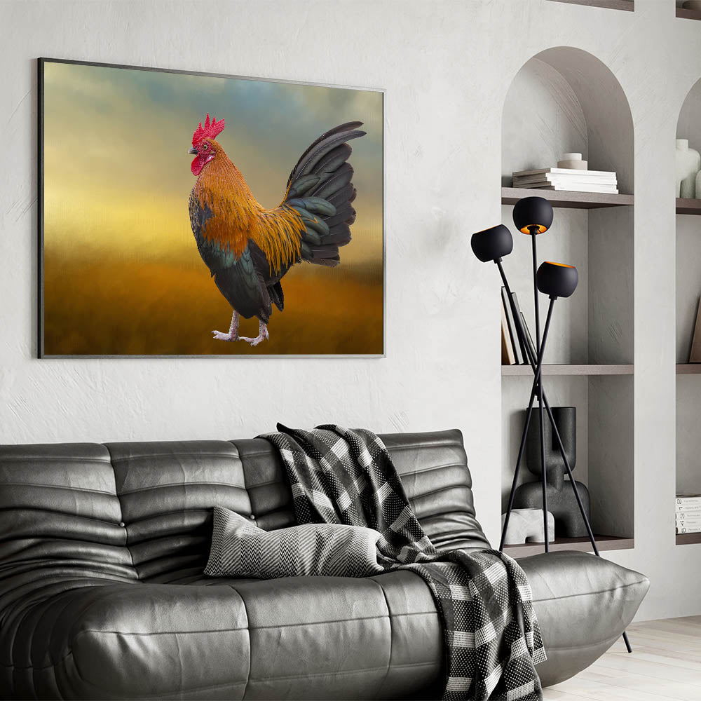 Majestic Rooster at Dawn - Stunning Chicken Wall Art for Rustic Decor