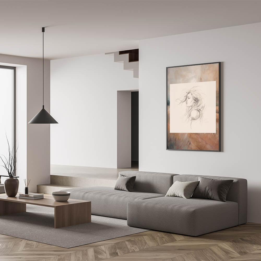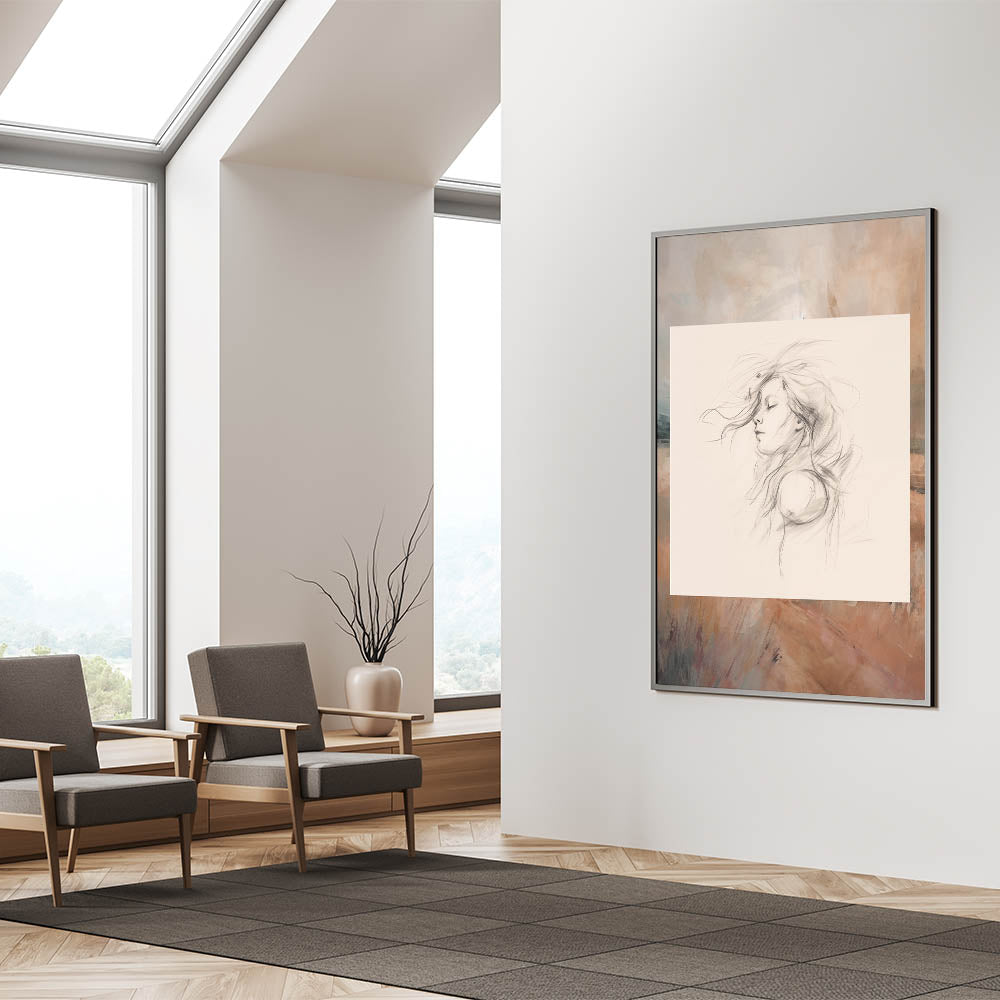 Elevate your space with this minimalist abstract portrait art, an exquisite blend of elegance and simplicity. This modern piece features a delicate sketch of a woman's profile, set against a neutral background. The gentle lines and serene expression create a calming and sophisticated atmosphere. Perfect for contemporary and minimalist interiors, this artwork is available in various formats to suit your decor needs.