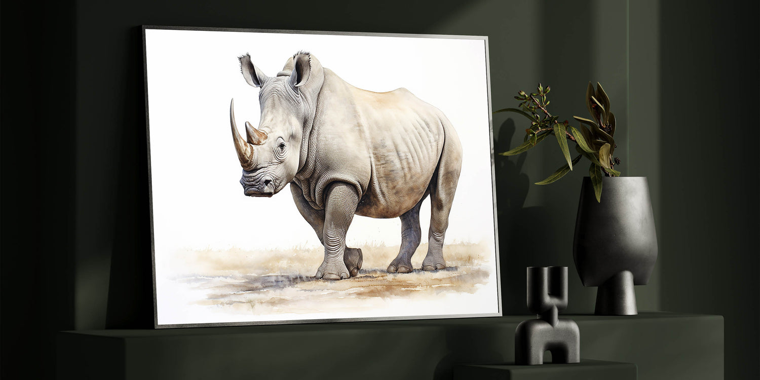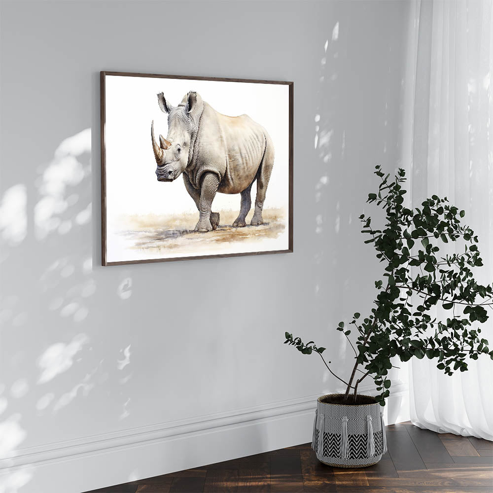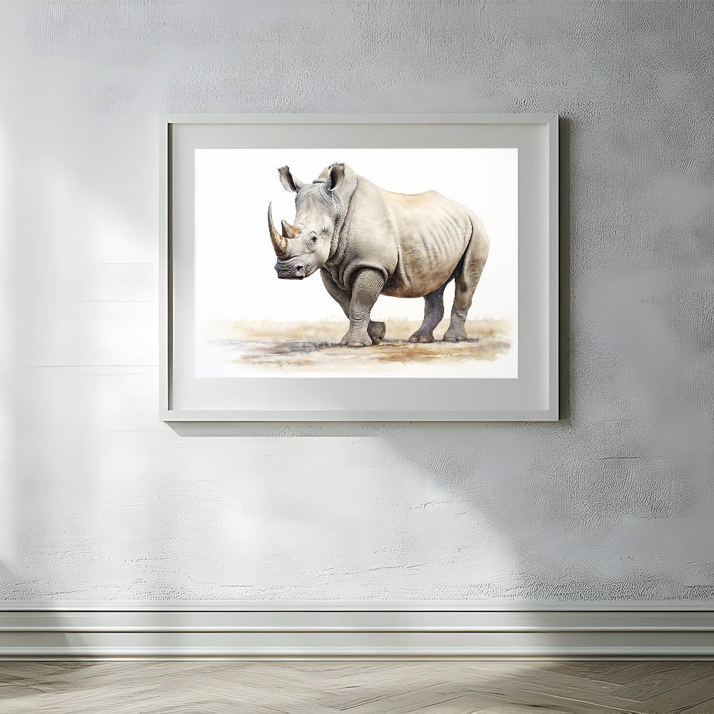 Introduce a touch of elegance and simplicity to your space with this minimalist rhinoceros wall art. The subtle hues and refined details of the rhinoceros, set against a clean white background, create a peaceful and sophisticated piece of art. Perfect for those who appreciate minimalist design and nature-inspired decor, this artwork adds a serene presence to any room.