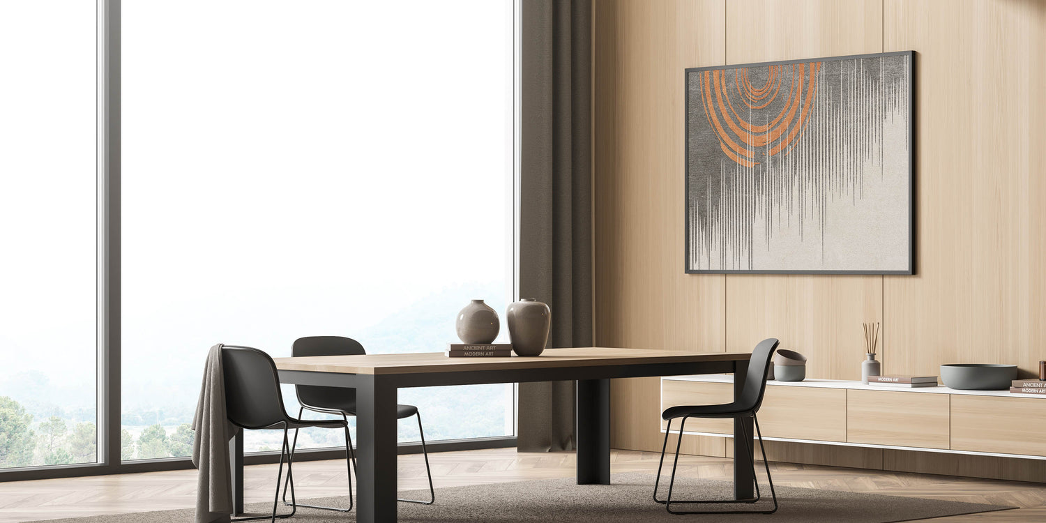 - Dynamic Design: The blend of bold orange circles and detailed linear patterns adds energy and movement to your decor.