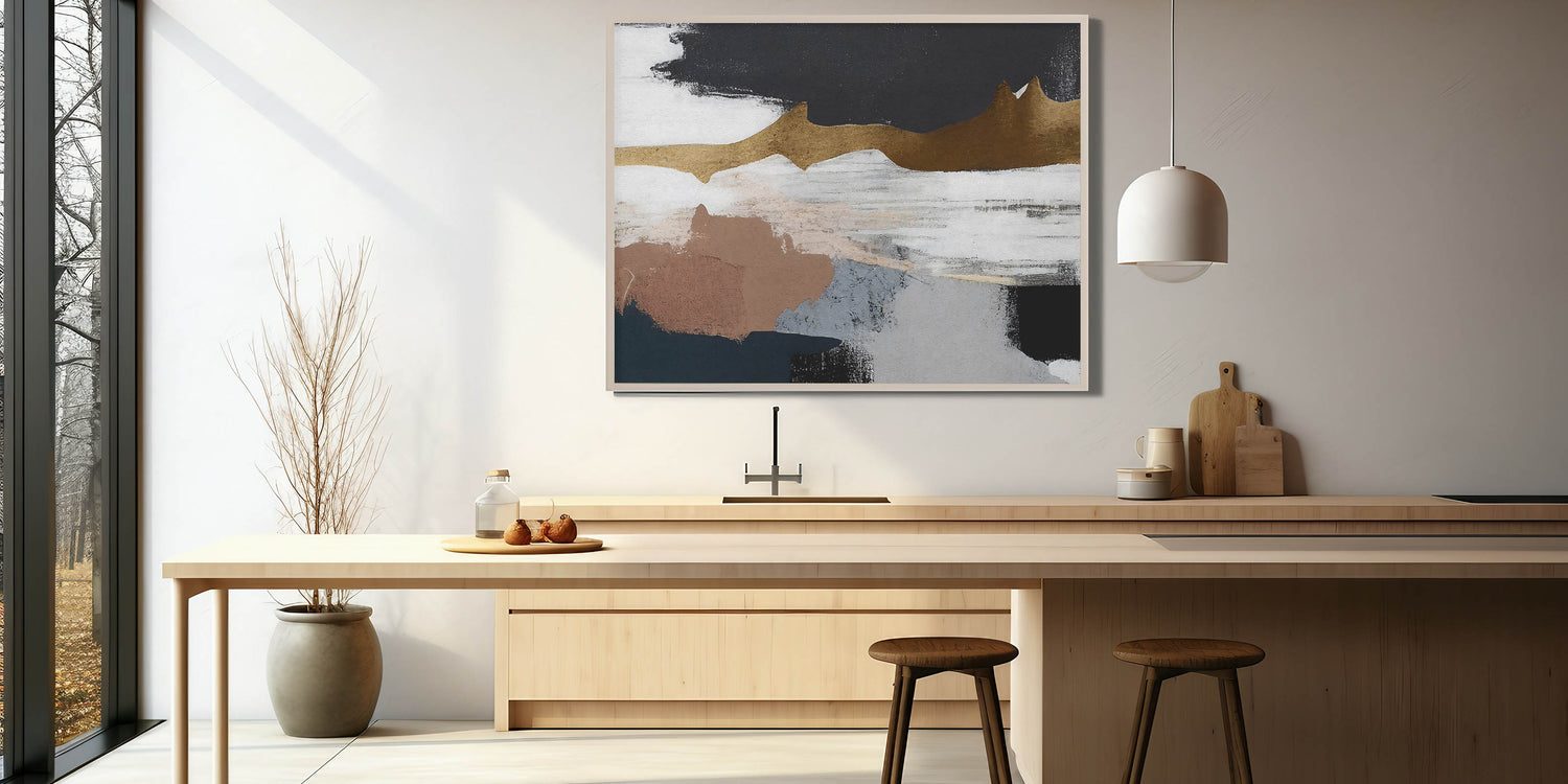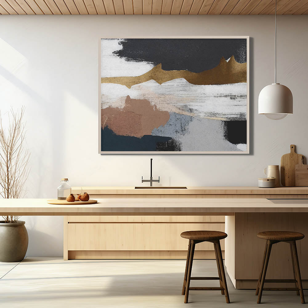 This abstract art piece not only adds visual interest but also brings a sense of balance and harmony with its earth-toned palette. It’s an ideal choice for those looking to elevate their decor with a piece that is both modern and timeless.