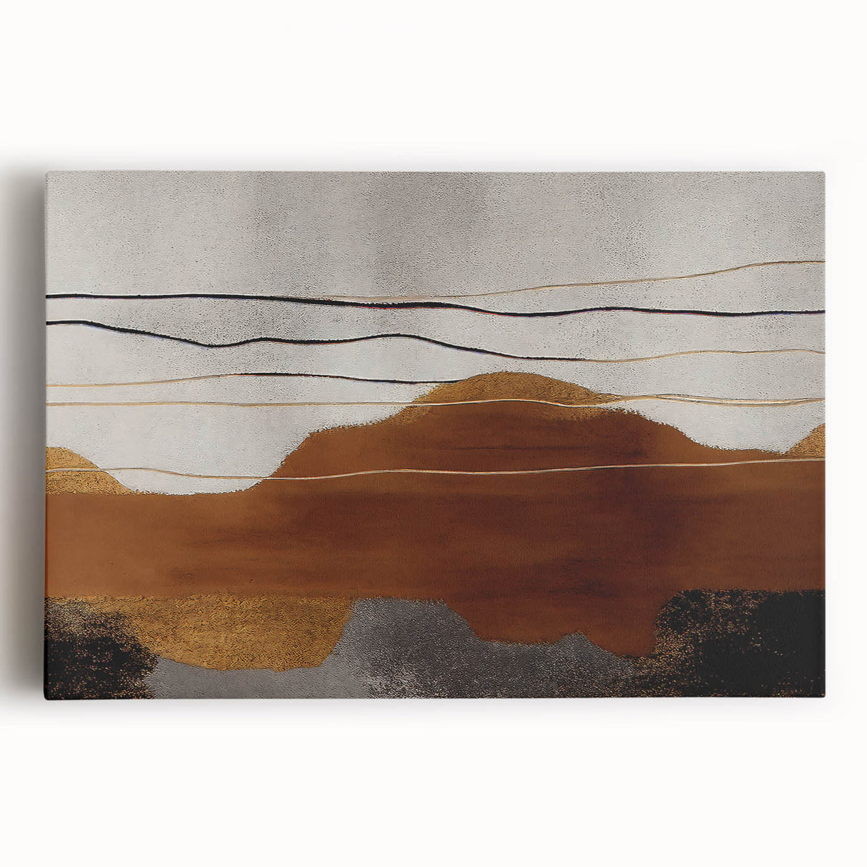 Transform your space with this Modern Abstract Landscape Canvas Art, featuring a harmonious blend of earth tones and minimalist line art. The artwork evokes a serene landscape with flowing lines and rich, warm colors, including shades of brown, gold, and beige. The textured elements and gentle curves create a sense of depth and tranquility, making it an ideal piece for those looking to add a touch of natural elegance to their decor.