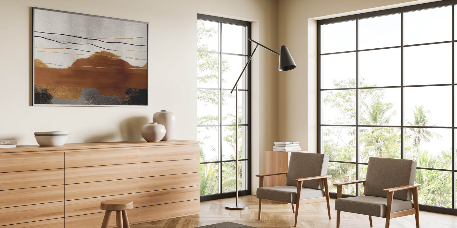 - Earthy color palette with minimalist line accents, perfect for contemporary and modern interiors.