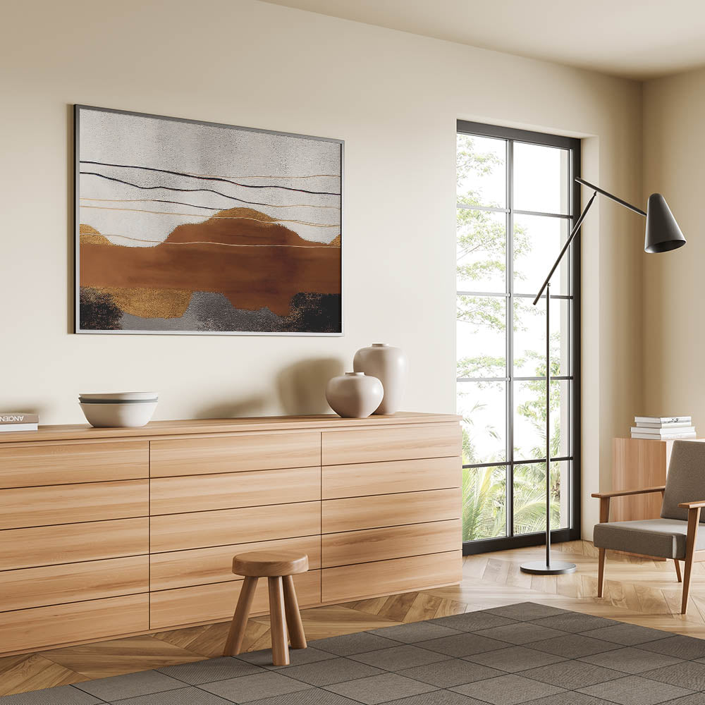 This artwork is perfect for those who appreciate the beauty of abstract landscapes and natural tones. Its soothing colors and elegant lines make it a versatile addition to any home, offering a perfect blend of modern aesthetics and artistic expression.