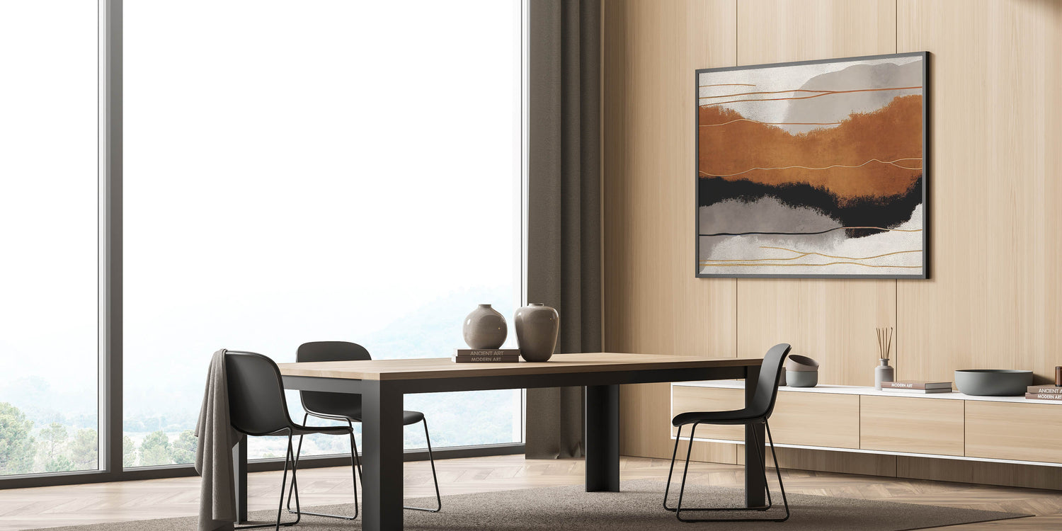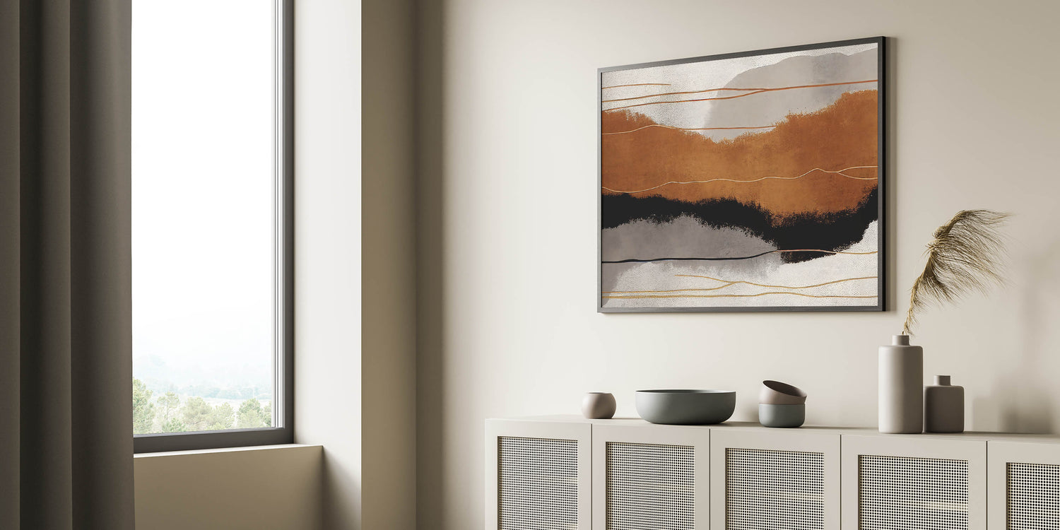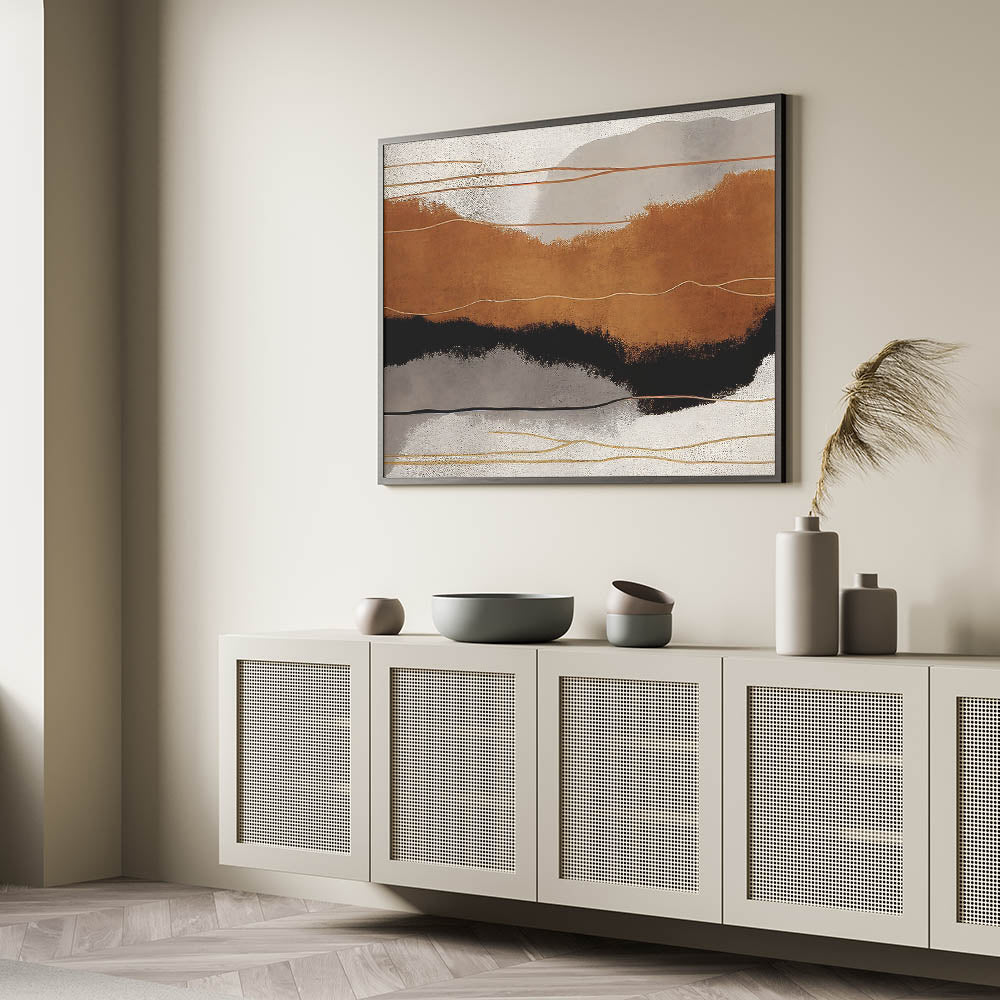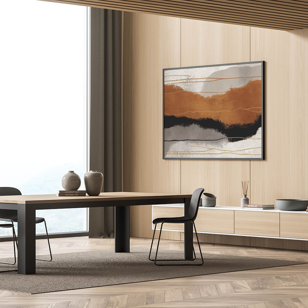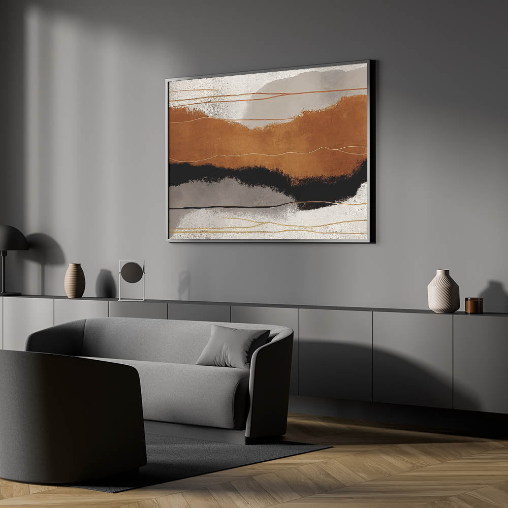Introducing a captivating piece from our Strokes and Lines collection, this modern abstract art showcases a dynamic blend of earthy tones and fluid lines. The bold brush strokes and geometric lines create a mesmerizing composition that effortlessly elevates any space. Whether displayed in a contemporary living room, a minimalist bedroom, or an office setting, this artwork adds a touch of sophistication and artistic flair.