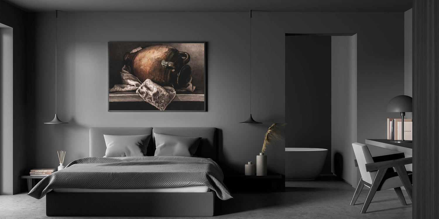 Moody Still Life Vase Art - Dark Timeless Decor for Elegant Interiors