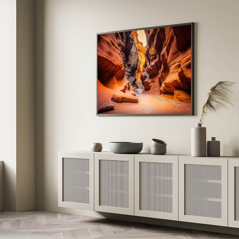 Whether you’re an outdoor enthusiast or simply appreciate the beauty of natural landscapes, this canyon pathway artwork is designed to elevate your home decor. Its detailed design and high-resolution quality make it a striking focal point in any room. Bring the warmth and beauty of the outdoors inside with this exquisite piece of canyon art decor.