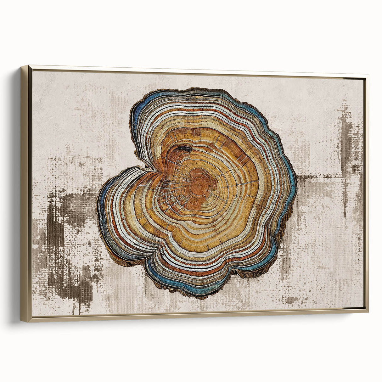 Introduce the beauty of nature's timeless patterns into your living space with this captivating "Rustic Tree Slice Strokes & Lines" abstract wall art. This artwork showcases the intricate rings of a tree slice, rendered in warm, earthy tones, and accented with modern strokes that highlight the natural texture and grain. The combination of rich browns, soft blues, and warm golds creates a visually appealing contrast, making this piece a perfect addition to any room with a rustic or contemporary theme.