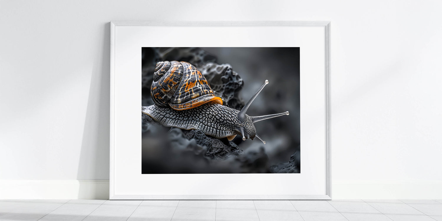 Transform your living space with this captivating Snail Wall Art, perfect for those who appreciate the intricate beauty of nature. This artwork features a detailed depiction of a garden snail, its textures and colors captured in stunning clarity, making it a striking addition to any room.