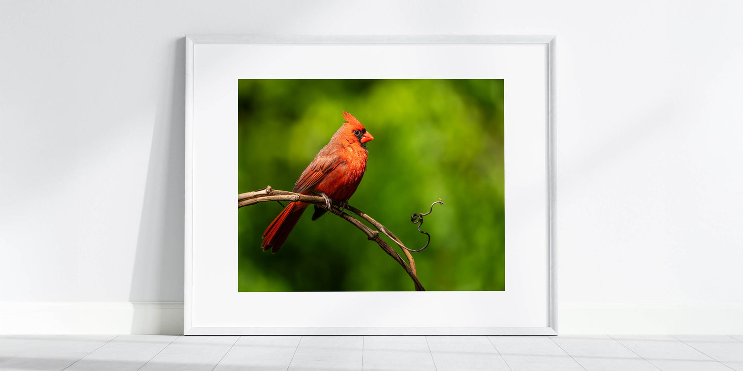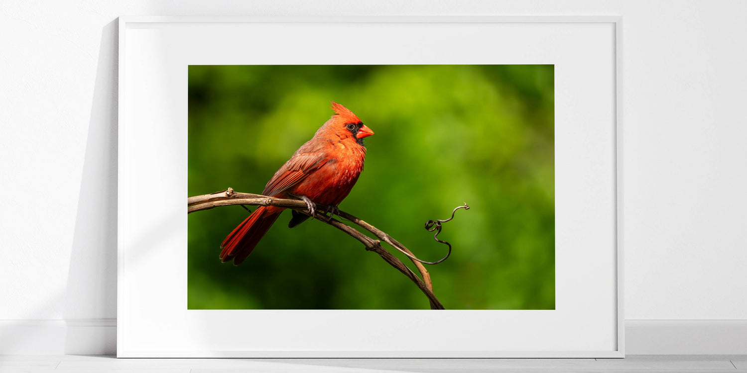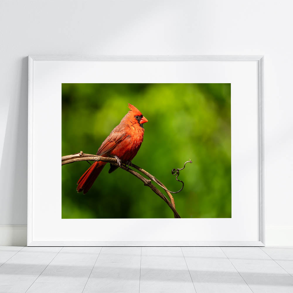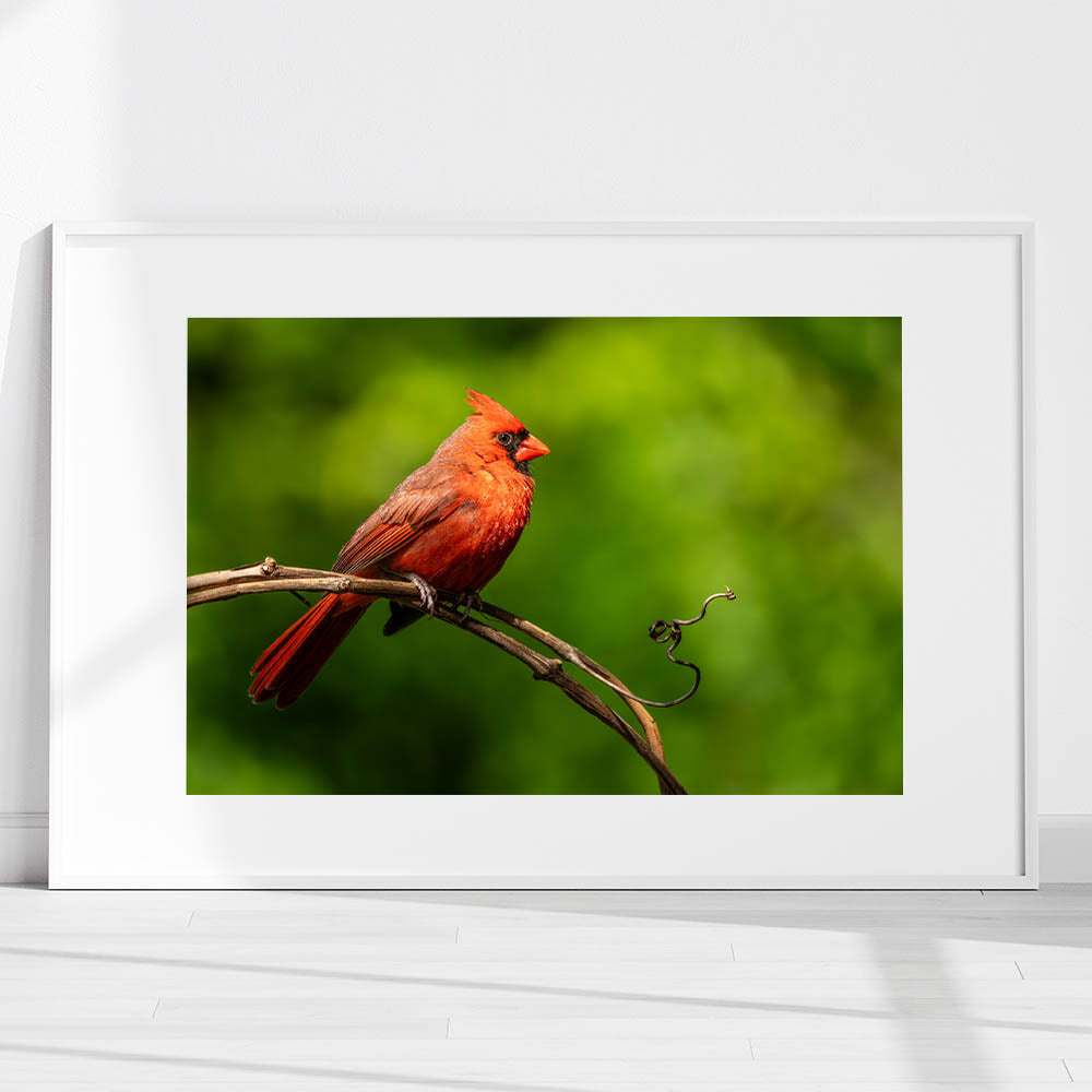- High-quality print that captures the intricate details of the cardinal’s feathers and the textured vine.