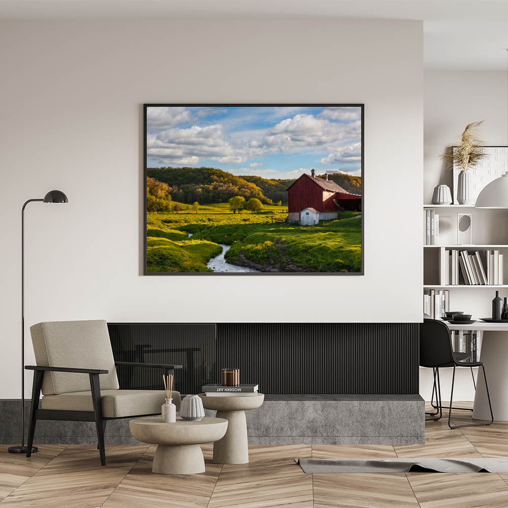Vintage Red Barn Wall Art – Rustic Farmhouse Barn Landscape Canvas Print