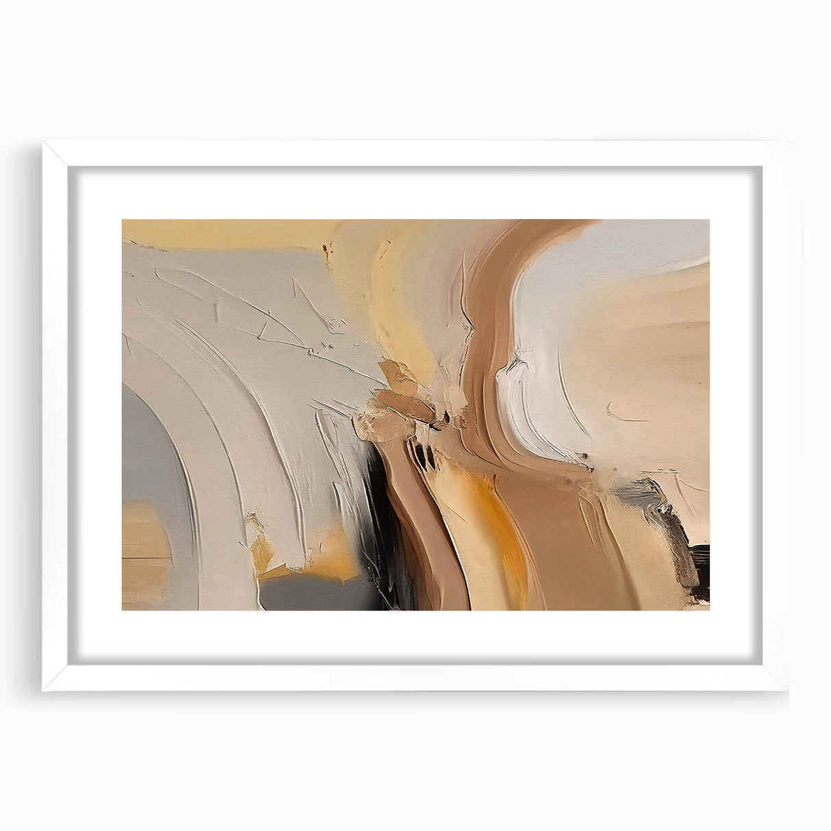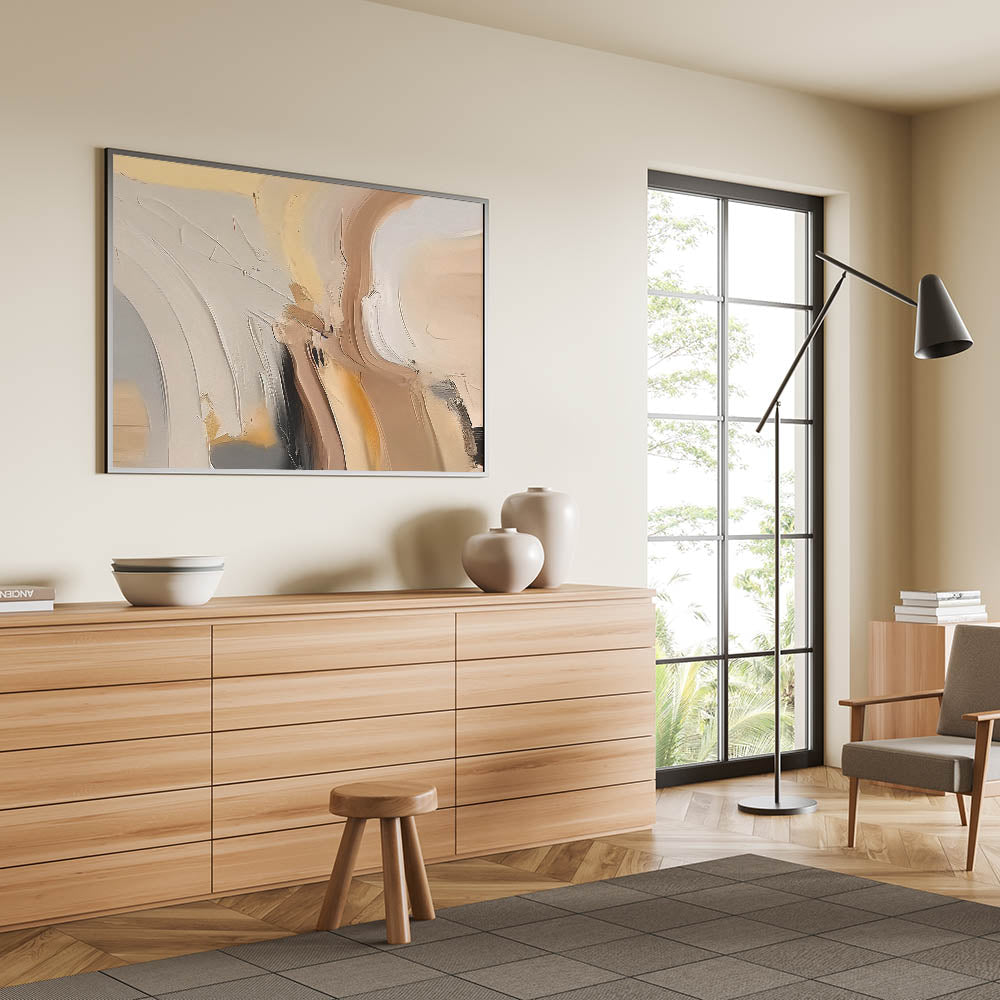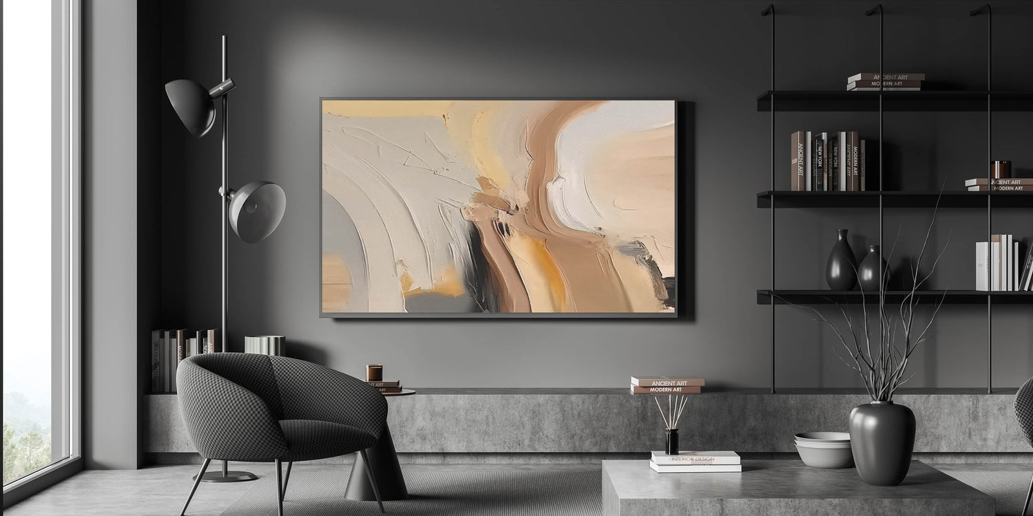 Bring warmth and sophistication to your space with this contemporary abstract strokes design. The artwork features a beautiful blend of warm neutral tones, including soft beiges, tans, and subtle hints of black, creating a soothing and inviting atmosphere. The dynamic brushstrokes and elegant curves give this piece a unique character that perfectly complements modern and minimalist interiors.