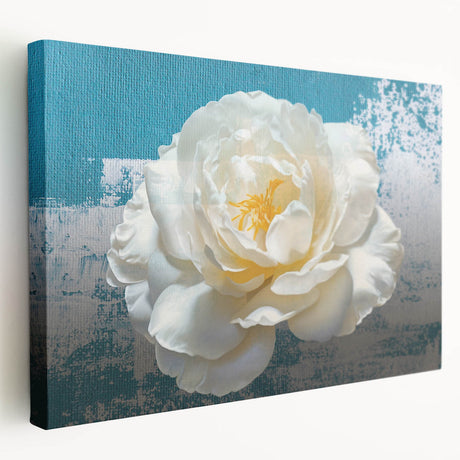 • Stretched canvas wall art showcasing an abstract minimalist design with soft hues of blue and beige, perfect for modern home decor. Side view highlights the canvas depth and texture, ideal for enhancing living spaces.