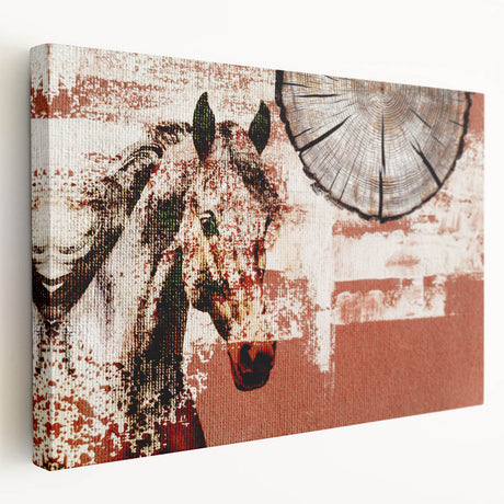 • Side view of a stretched canvas wall art piece showcasing a detailed horse design, set against a neutral background, perfect for animal lovers and home decor enthusiasts.