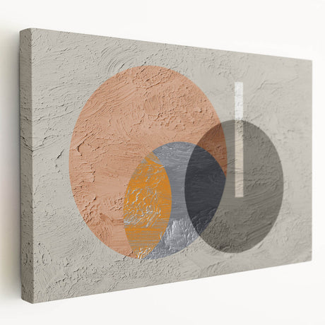 • Stretched canvas artwork showcasing an abstract minimalist design, featuring soothing earth tones and geometric shapes, perfect for modern home decor.