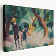 Celebrate the beauty of simplicity and innocence with August Macke's "Children with Goat." This vibrant Expressionist painting showcases two children interacting with a goat in a lush natural setting. The rich greens, warm browns, and soft yellows are complemented by vibrant accents of red and blue, creating a harmonious yet lively composition. Macke's abstract brushstrokes bring depth and energy, making this artwork a timeless addition to any space.