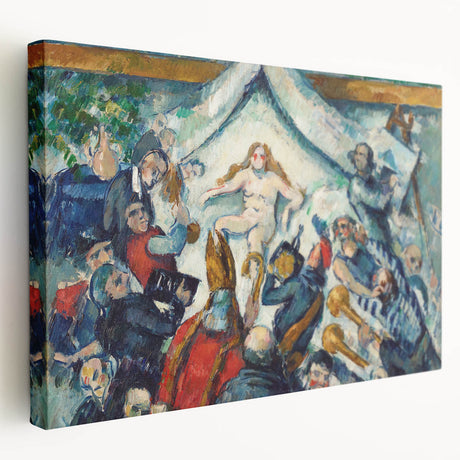 • Side view of a large stretched canvas depicting a Van Gogh-inspired wheatfield in vibrant yellow and blue tones.