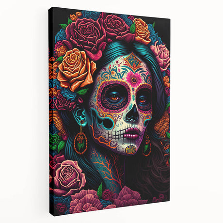 • A large canvas print featuring an array of colorful fruits and vegetables, ideal for kitchen wall art.