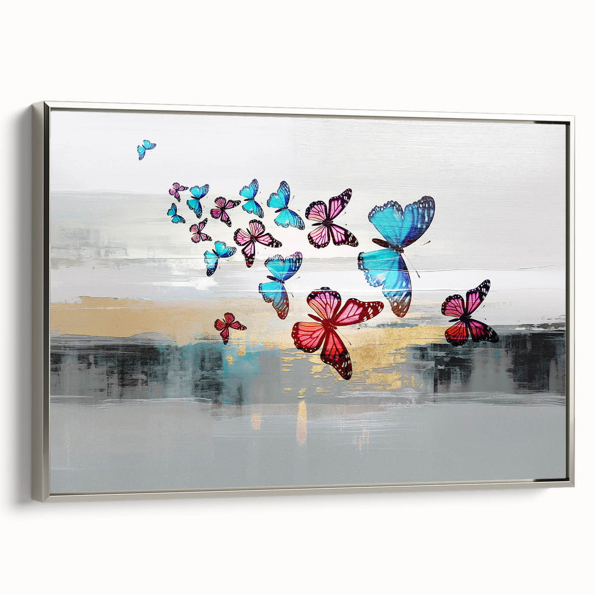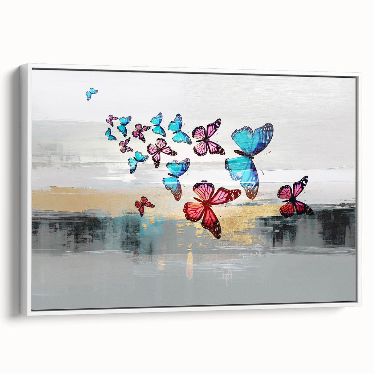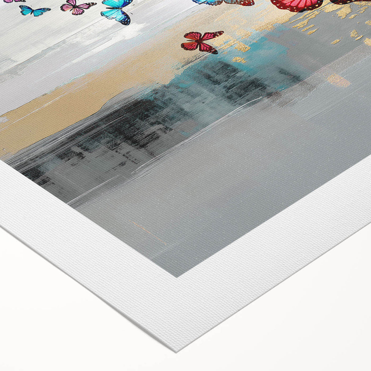 Brighten your space with our Colorful Butterfly Abstract Art on Canvas. This vibrant piece features a mesmerizing array of butterflies in flight, set against a backdrop of abstract strokes and lines. Perfect for adding a splash of color and whimsy to any room.