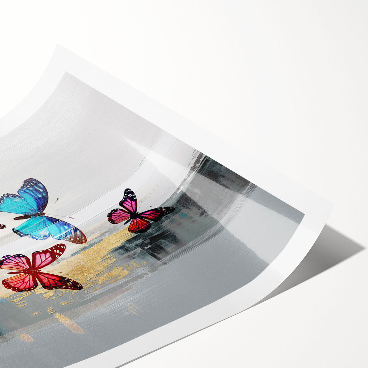 - Design: A captivating collection of colorful butterflies against a dynamic abstract background, blending modern and whimsical elements.