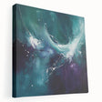 Bring motion and depth into your space with this contemporary fluid art piece, showcasing dramatic swirls of teal, violet, and soft white. The dynamic brushwork and energetic splashes evoke oceanic movement and cosmic flow, making this modern abstract wall art a perfect fit for bold, expressive interiors.